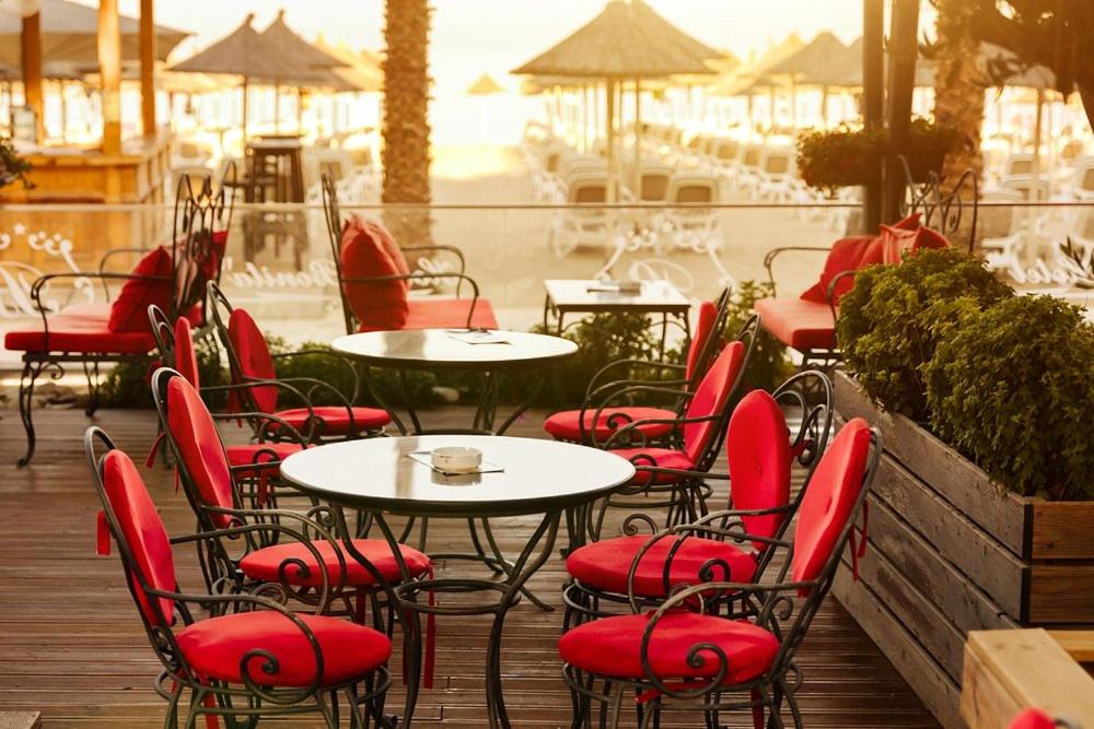 Bezmaksas saulessargi un atpūtas krēsli pie baseina