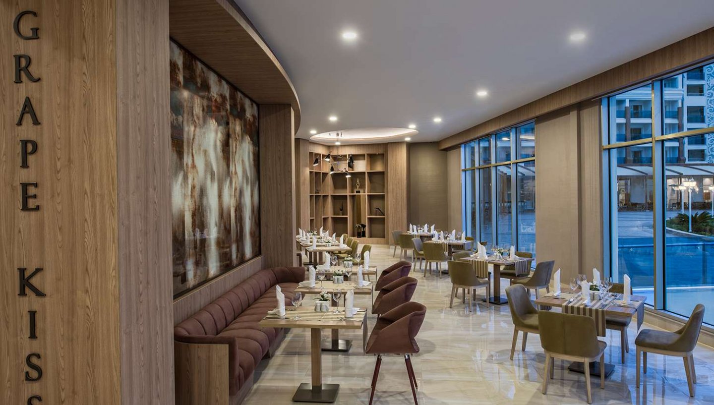 Delphin Be Grand aizrauj ar savu ekskluzīvo arhitektūru, daudzajām atpūtas iespējām un kopto dārzu, kā arī palīdz veidot neaizmirstamas brīvdienu atmiņas. Viesnīca sastāv no četriem 9 stāvu korpusiem, kuros ir 837 numuri, ir 19 lifti (no kuriem 7 ir panorāmas lifti). Viesnīcā ir krieviski runājošs personāls.