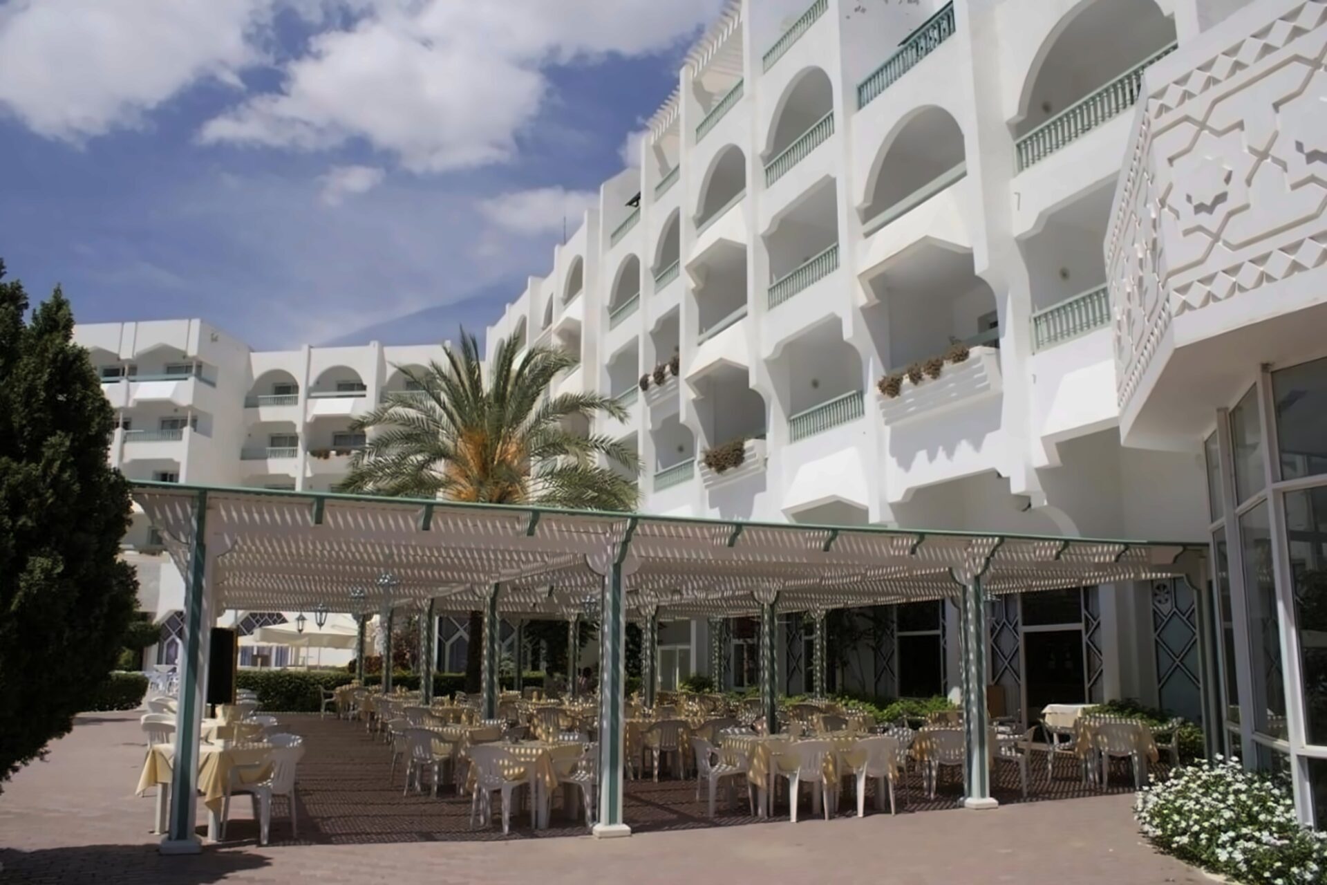 El Mouradi Palace atrodas Port El Kantaoui kūrortā, tieši pie smilšainās pludmales un pretī 36 bedrīšu golfa laukumam. Viesnīca piedāvā plašu pakalpojumu klāstu, tostarp talasoterapijas centru, vairākus baseinus un dažādas ēdināšanas iespējas. Tā ir piemērota ģimenēm, pāriem un aktīviem ceļotājiem.