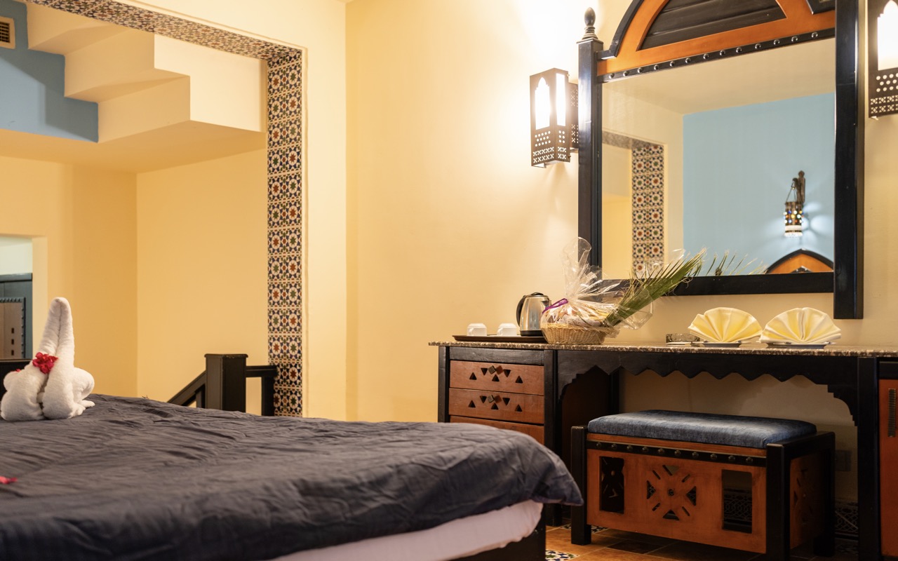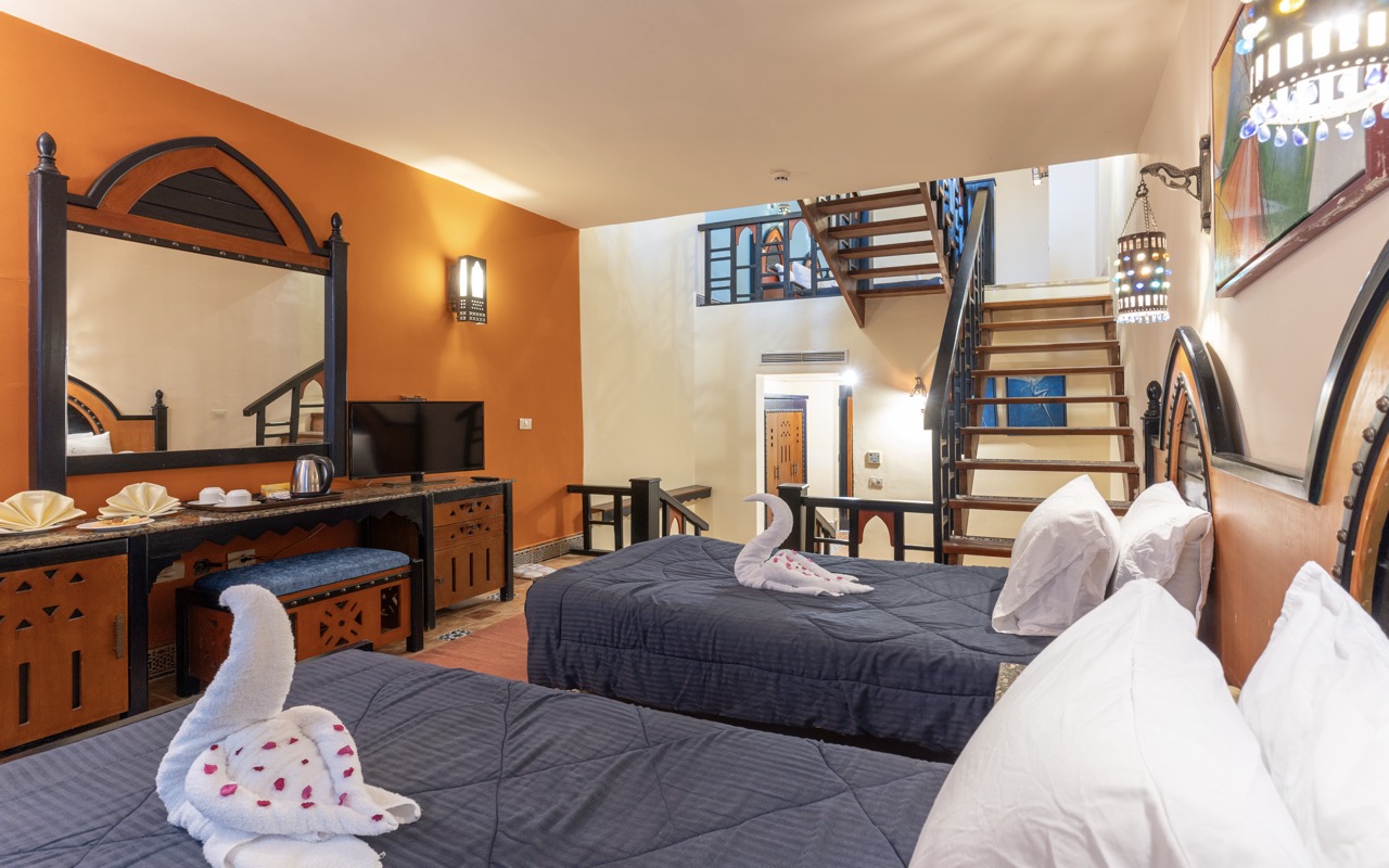 Duplex – numura izmērs: 80 m2. Maksimālais viesu skaits numurā (ieskaitot bērnus): 4. Divstāvu numurs ar skatu uz dārzu. Pirmajā stāvā esošajā numurā ir divas vienguļamās gultas, otrajā – viena divguļamā gulta.Koka pakāpieni starp stāviem (bez iekšdurvīm).