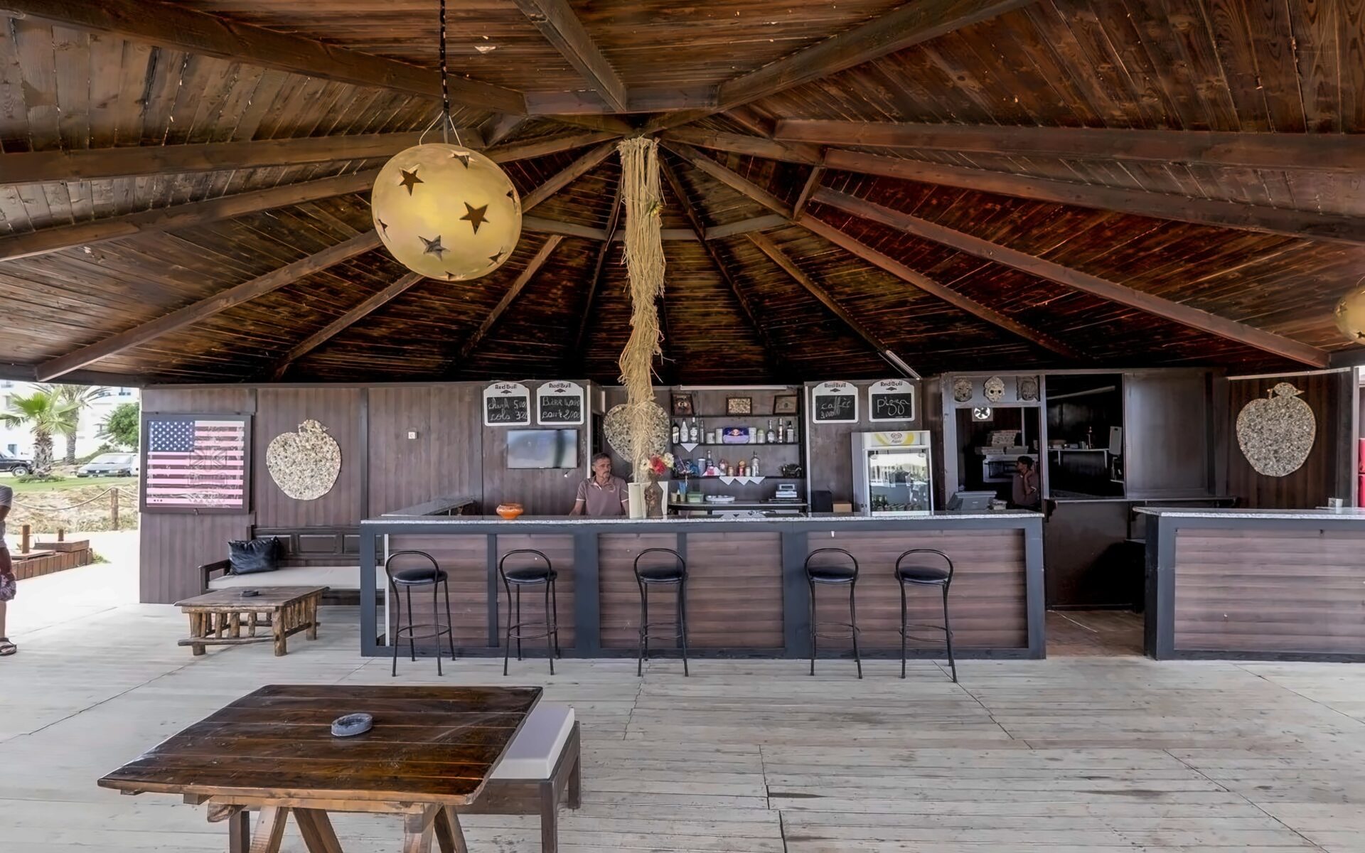 Pludmales bārs ar atspirdzinošiem dzērieniem un uzkodām