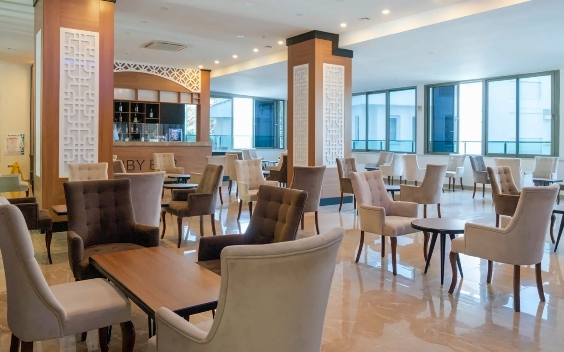 5 bāri: lobija bārs, bārs pie baseina, uzkodu bārs, disko bārs