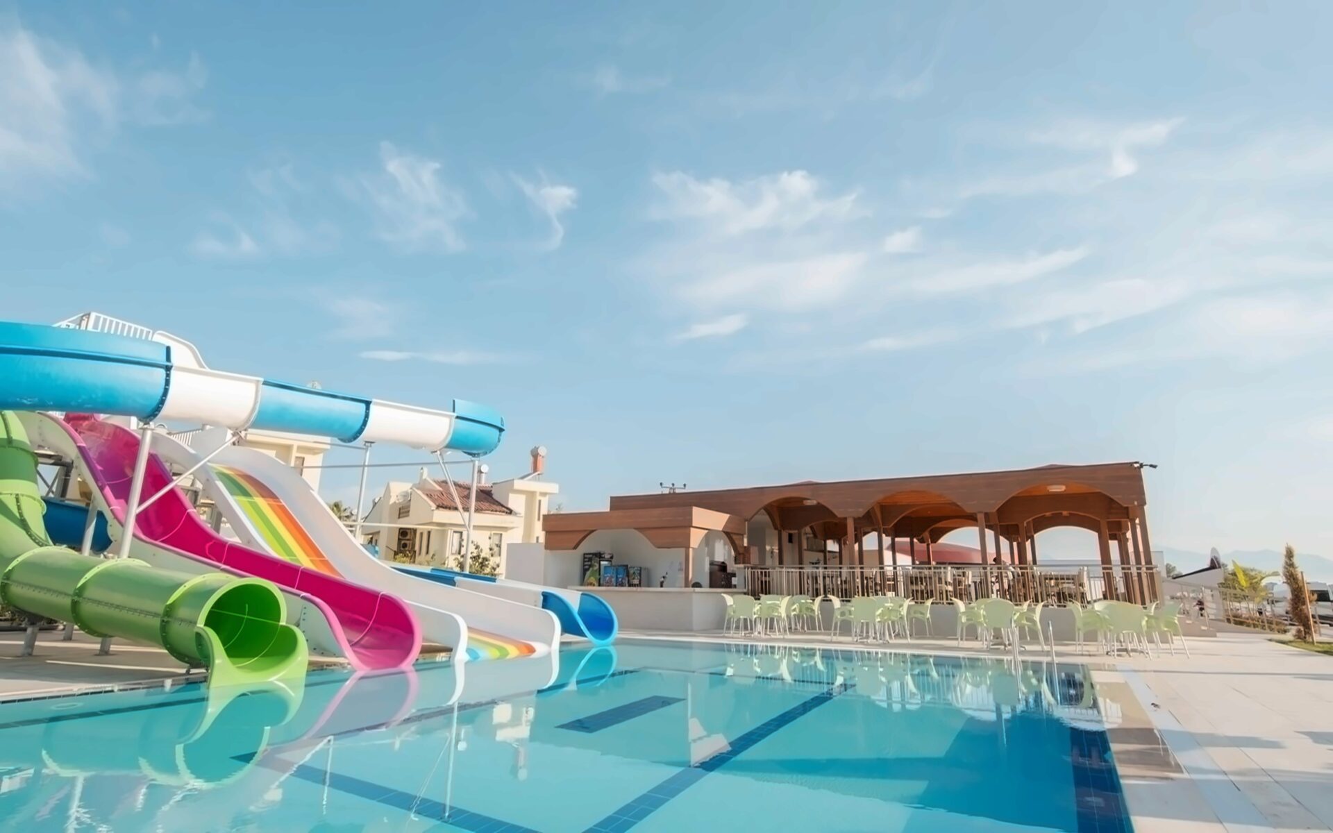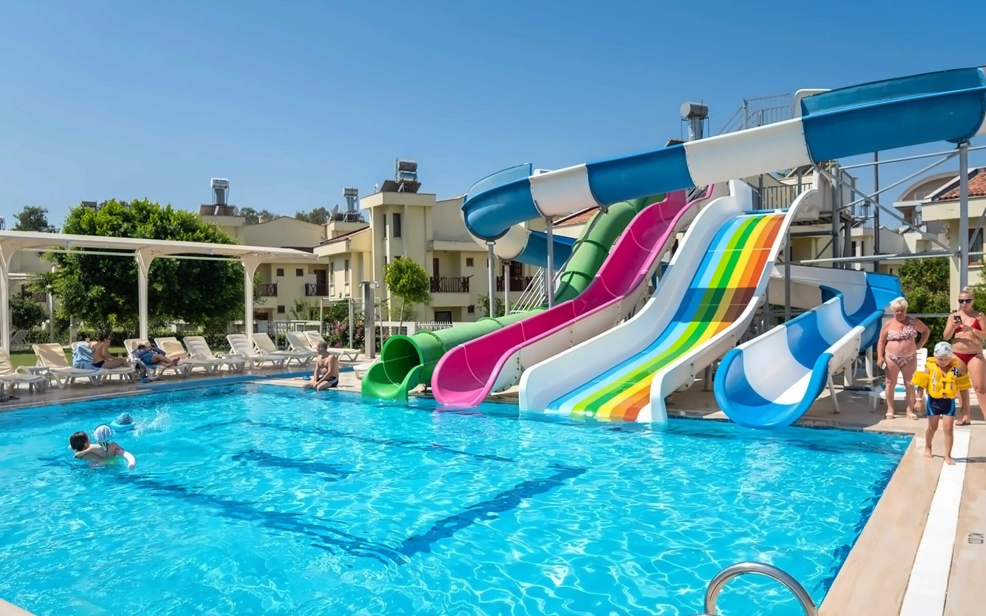 Atklātais baseins ar 3 ūdens slidkalniņiem (100 m2)