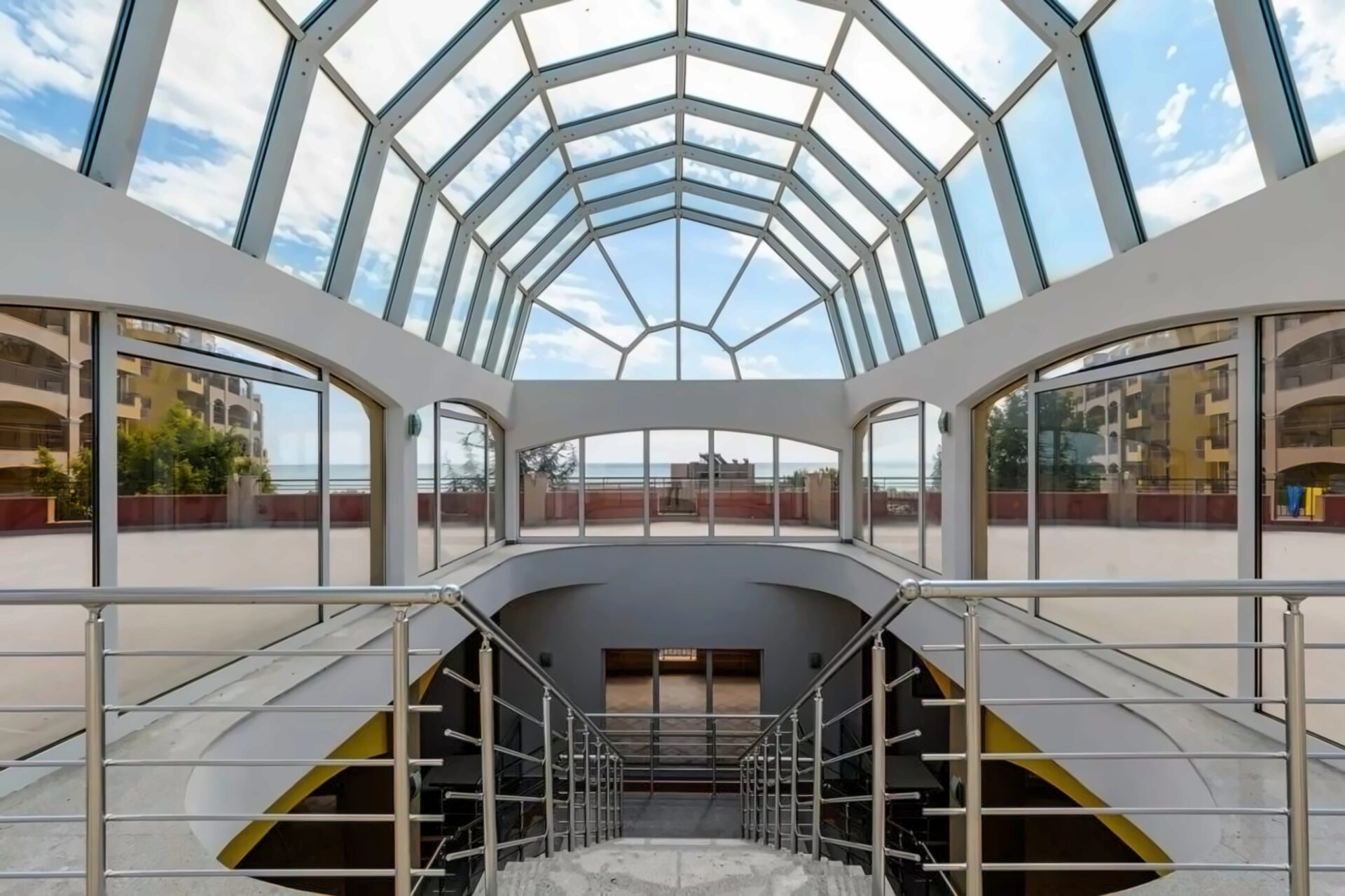 Galvenais restorāns ar balkoniem un jūras skatu