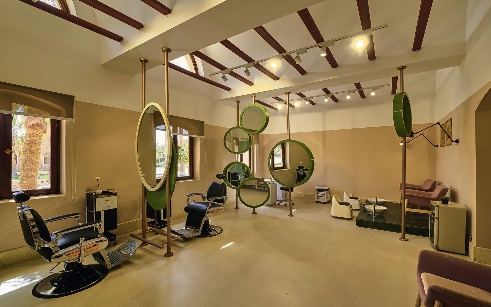 Arhitektūra tradicionālā Nūbijas stilā, kas harmoniski iekļaujas dabā