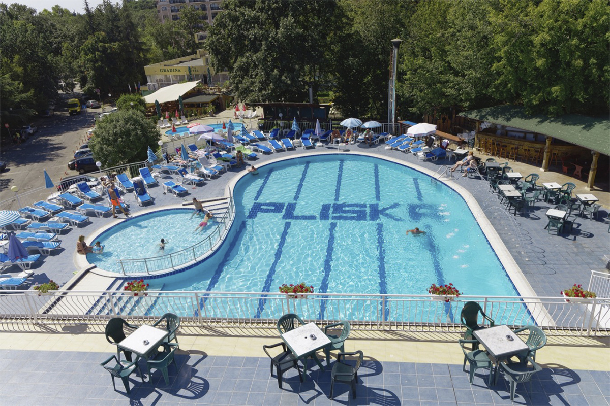 Elegants trīszvaigžņu Pliska viesnīcu komplekss atrodas Golden Sands kūrorta centrā, piekārts 10‑stāvu terasveidā pie krāšņas apzaļumotas ainavas. Kompleksam ir gan iekšējais, gan ārējais peldbaseins ar baseina bāru, kā arī peldbaseins bērniem. Viesiem pieejami restorāni un bāri, fitnesa centrs, sauna, sporta zāle, biljarda un galda tenisa iespējas, kā arī interneta kafejnīca. Viesnīca ir piemērota gan ģimenēm, gan konferenču, gan kāzu pasākumiem.