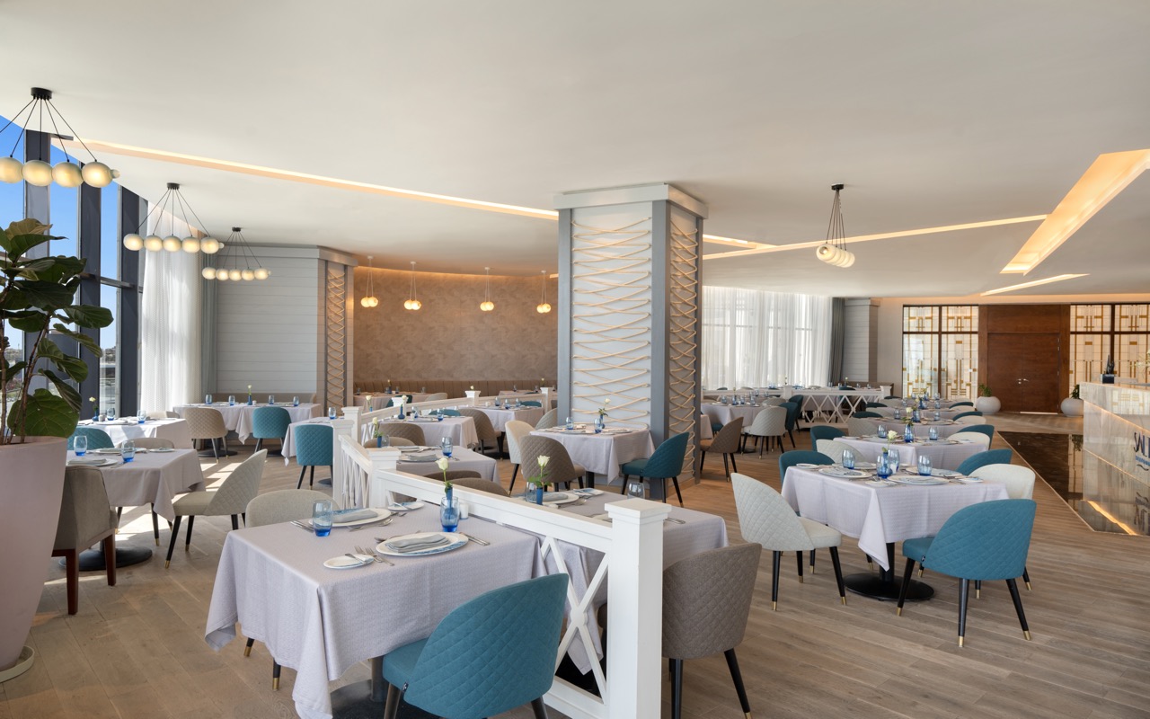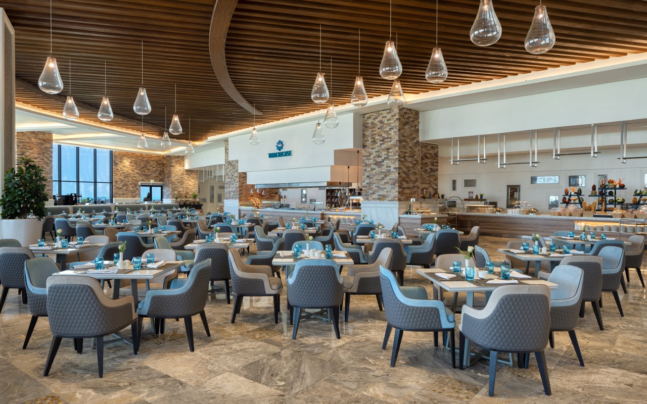 Galvenais bufetes restorāns, kas piedāvā starptautiskās virtuves ēdienus