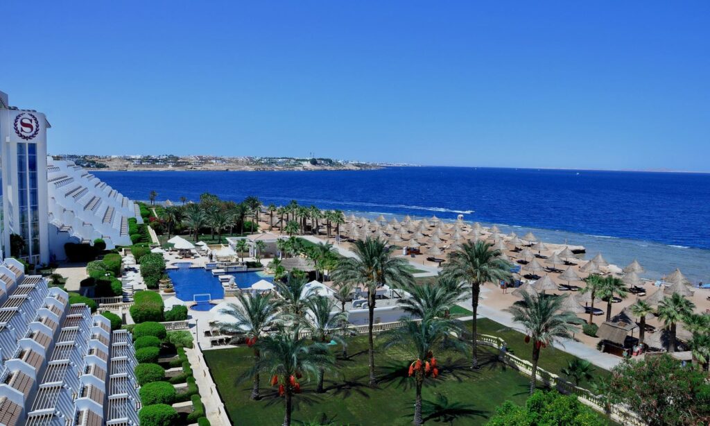 Sheraton Sharm Hotel 5* ir daļa no liela viesnīcu kompleksa – Sheraton Sharm Hotel, Resort, Villas & SPA, kas sastāv no Sheraton Sharm Hotel (Main Building + Villas) un Sheraton Resort Area. Gardens Bay ar savu neticamo zemūdens pasauli piesaista snorkelētājus un nirējus. Īpašu uzmanību ir pelnījis viesnīcas SPA centrs. Labi aprīkotajai trenažieru zālei ir lielisks skats uz jūru. Neliels attālums līdz Holivudas parkam un visām Naama Bay izklaidēm priecēs aktīvās vakara dzīves cienītājus.