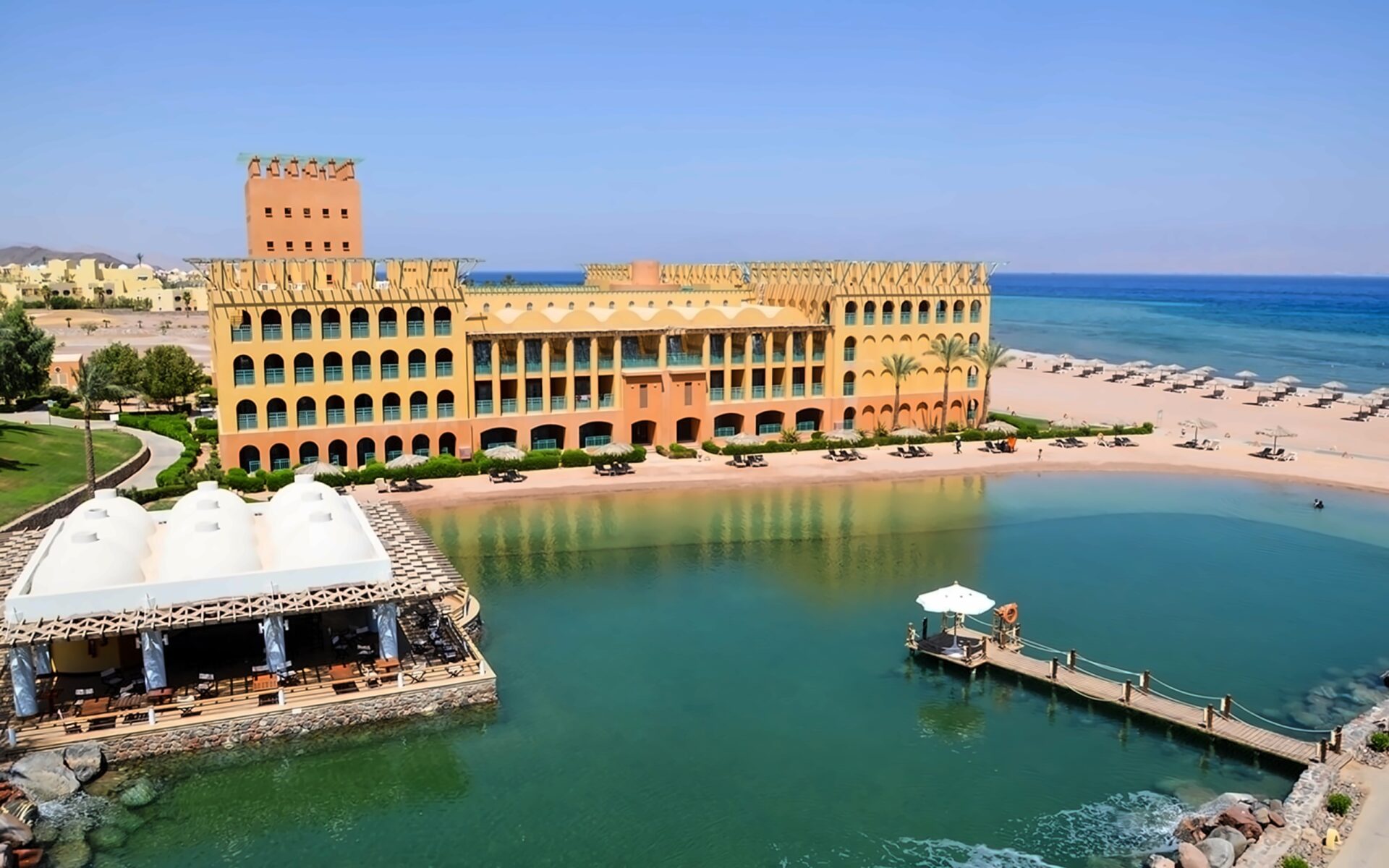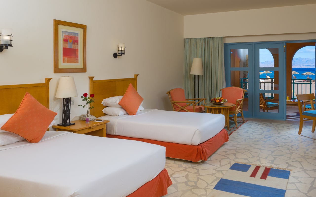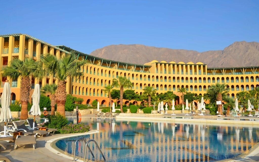 Strand Taba Heights Beach & Golf Resort ir eleganta viesnīca, kas atrodas starp Sinaja kalniem un Akabas līča dzidrajiem ūdeņiem. Viesnīca piedāvā mierīgu un relaksējošu atmosfēru, apvienojot tradicionālo arābu arhitektūru ar mūsdienu komfortu. Tā atrodas Taba Heights kūrorta zonā, nodrošinot viesiem piekļuvi plašām atpūtas iespējām un golfa laukumiem. Teritorija ir zaļa un labi kopta, radot oāzes sajūtu tuksneša vidū. Viesiem ir pieejamas vairākas peldbaseinu zonas un plašs pakalpojumu klāsts. Numuri ir plaši un mājīgi, lielākoties ar skatu uz jūru vai dārzu. Viesnīca lepojas ar savu privāto pludmali un koraļļu rifu tuvumu. Viesnīca ir lieliski piemērota gan ģimenes brīvdienām, gan mierīgai atpūtai pāriem.