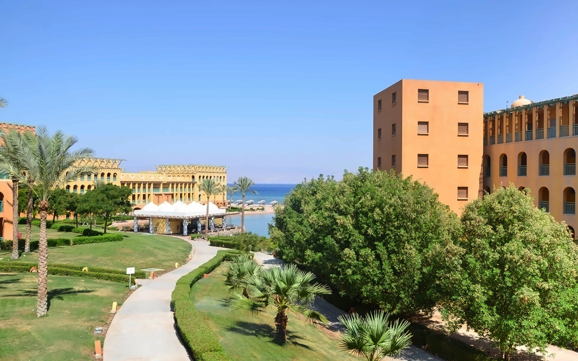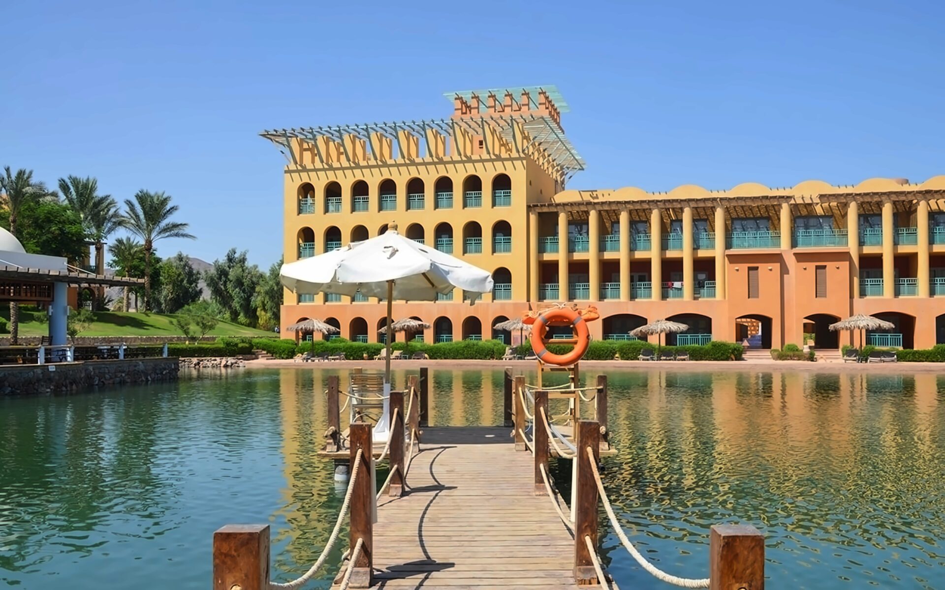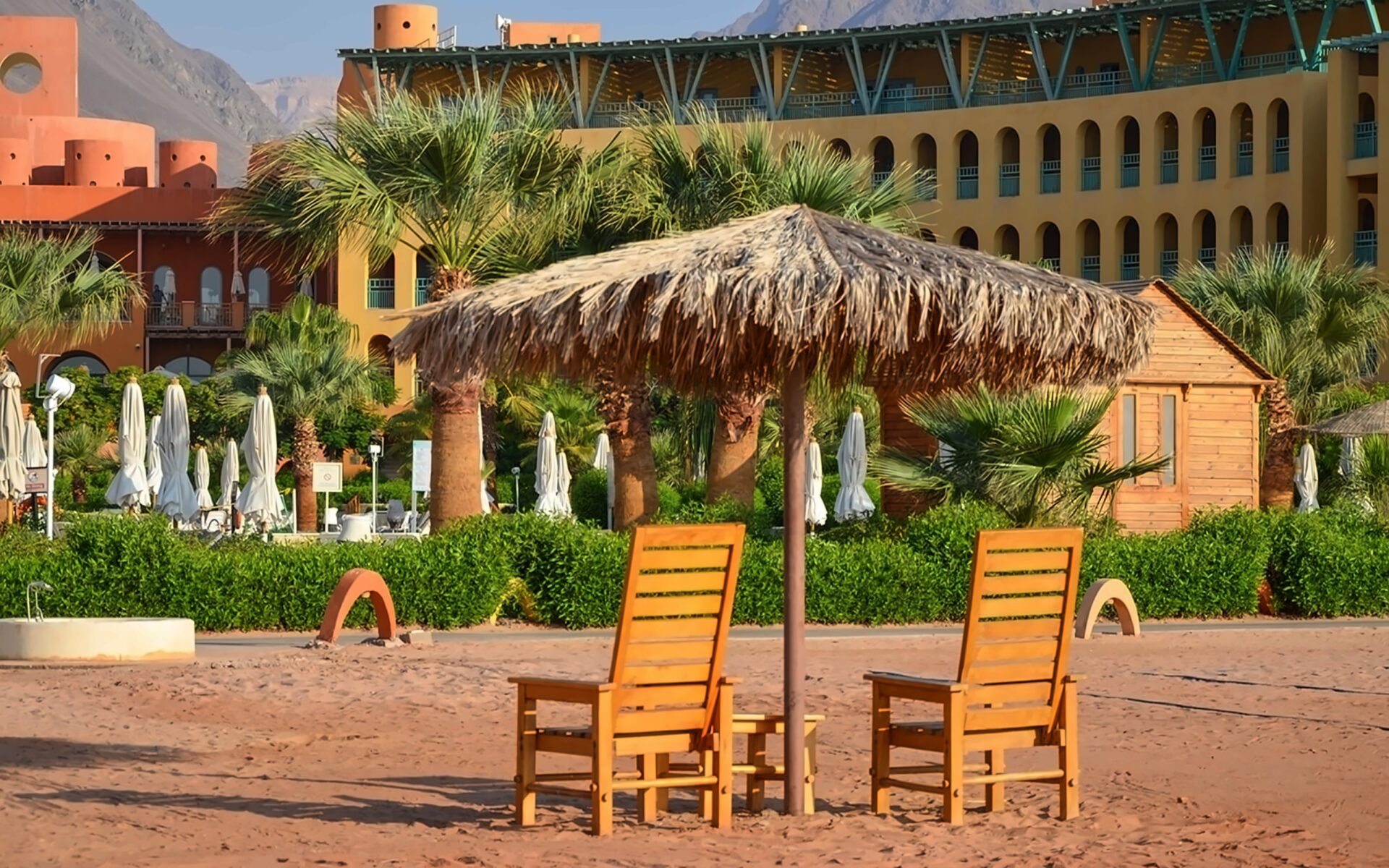 Strand Taba Heights Beach & Golf Resort ir eleganta viesnīca, kas atrodas starp Sinaja kalniem un Akabas līča dzidrajiem ūdeņiem. Viesnīca piedāvā mierīgu un relaksējošu atmosfēru, apvienojot tradicionālo arābu arhitektūru ar mūsdienu komfortu. Tā atrodas Taba Heights kūrorta zonā, nodrošinot viesiem piekļuvi plašām atpūtas iespējām un golfa laukumiem. Teritorija ir zaļa un labi kopta, radot oāzes sajūtu tuksneša vidū. Viesiem ir pieejamas vairākas peldbaseinu zonas un plašs pakalpojumu klāsts. Numuri ir plaši un mājīgi, lielākoties ar skatu uz jūru vai dārzu. Viesnīca lepojas ar savu privāto pludmali un koraļļu rifu tuvumu. Viesnīca ir lieliski piemērota gan ģimenes brīvdienām, gan mierīgai atpūtai pāriem.