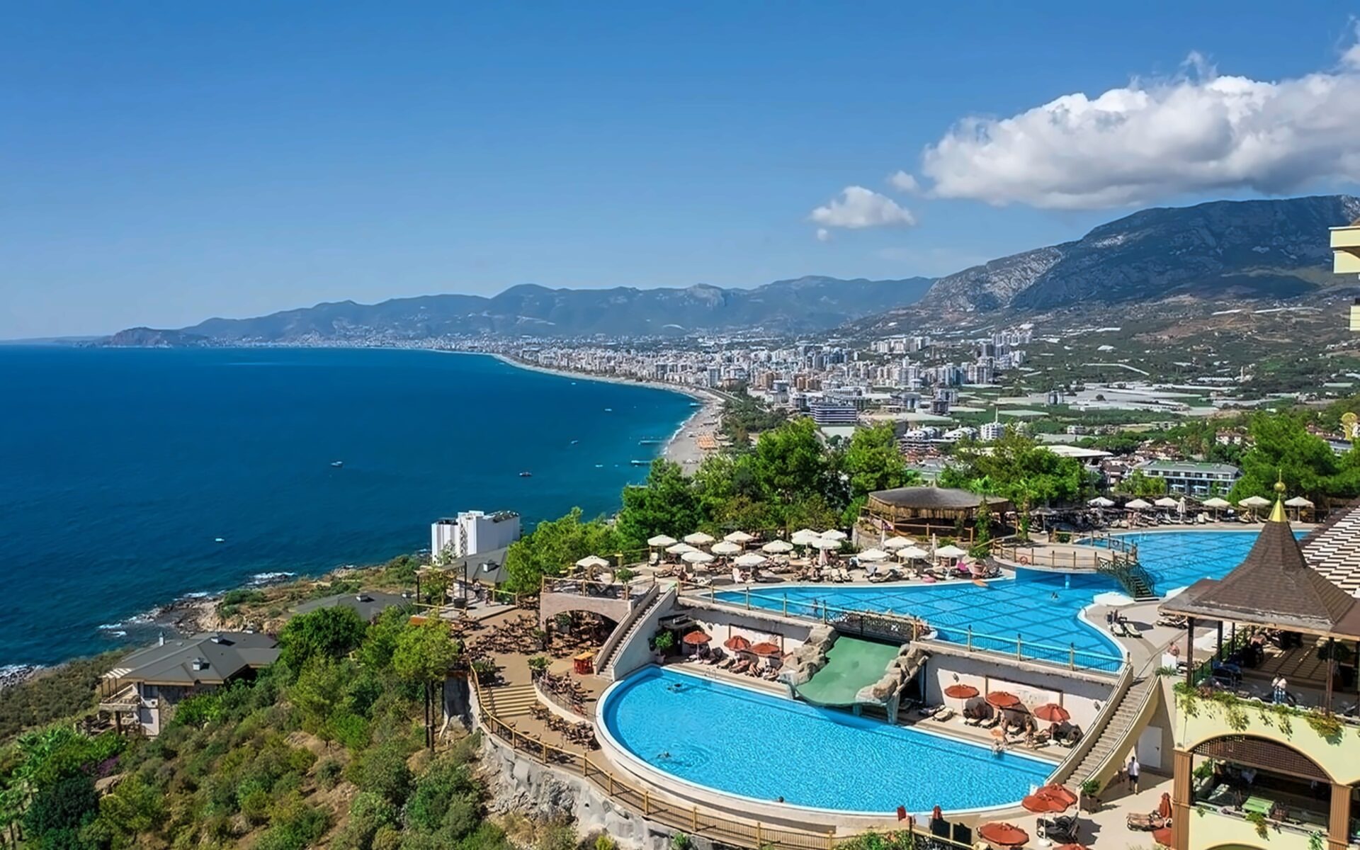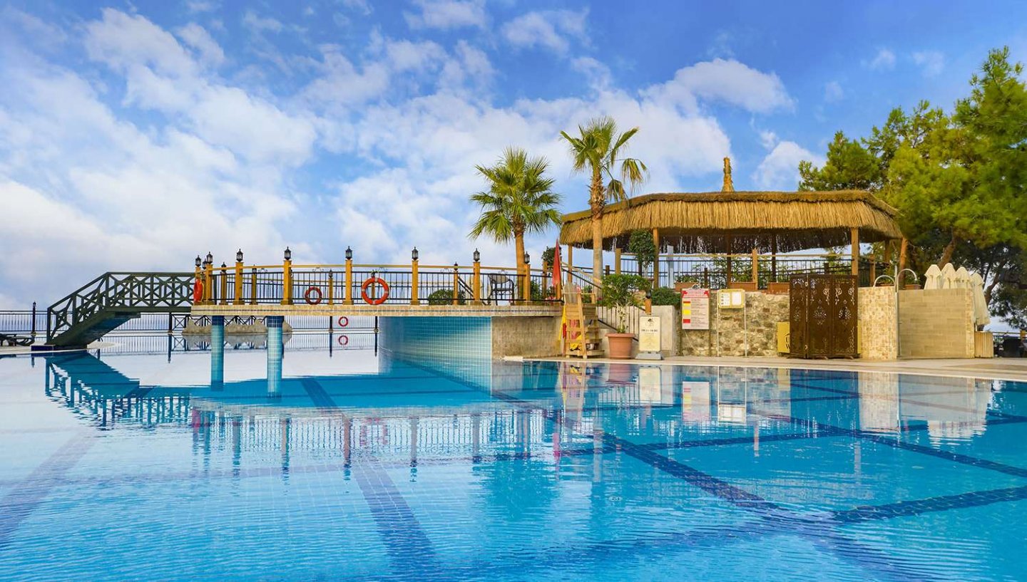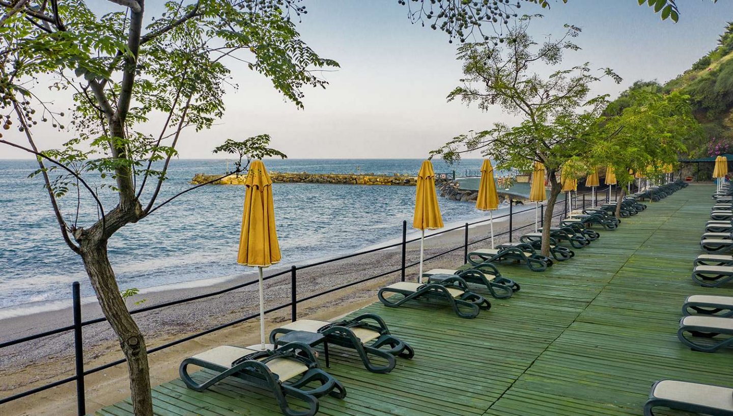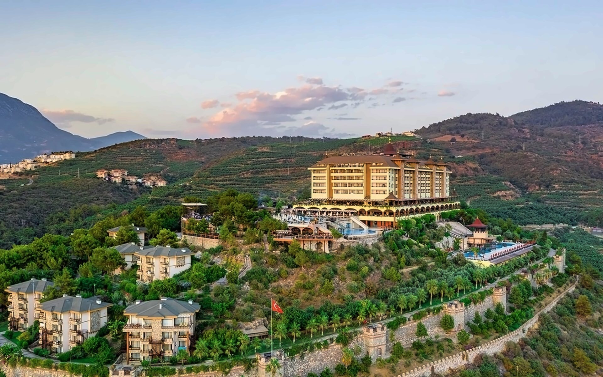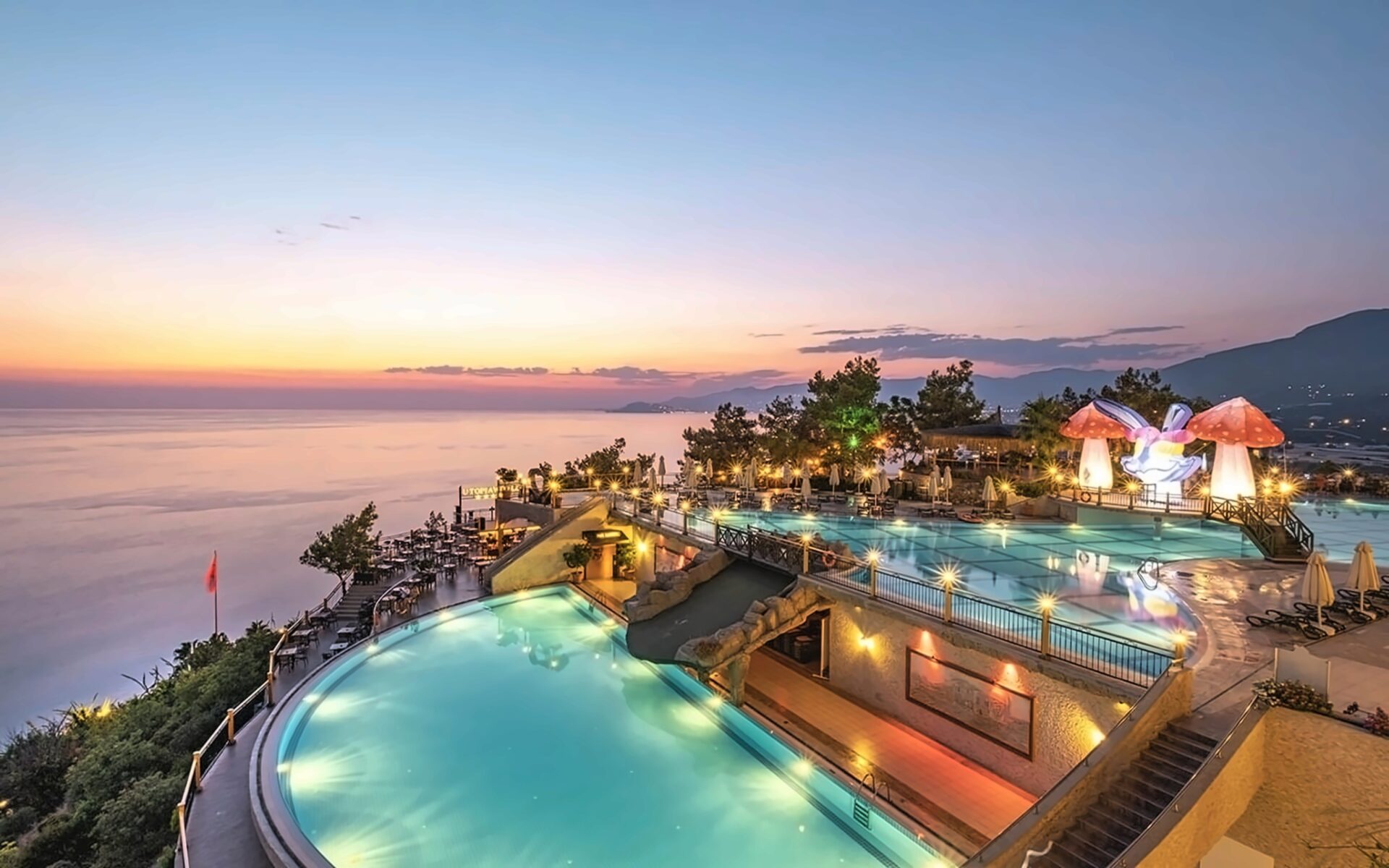 Viesnīca Utopia World atrodas uz klints Alanjas piekrastē, senās pilsētas Siedras vietā. No logiem paveras skats uz Vidusjūru. Viesnīca piedāvā Zilā karoga privāto pludmali ar 2 piestātnēm, āra baseiniem, ūdens atrakciju parku un SPA ar tradicionālo hamamu, kā arī vairākus a la carte restorānus. Viesnīca ir piemērota ģimenēm ar bērniem.