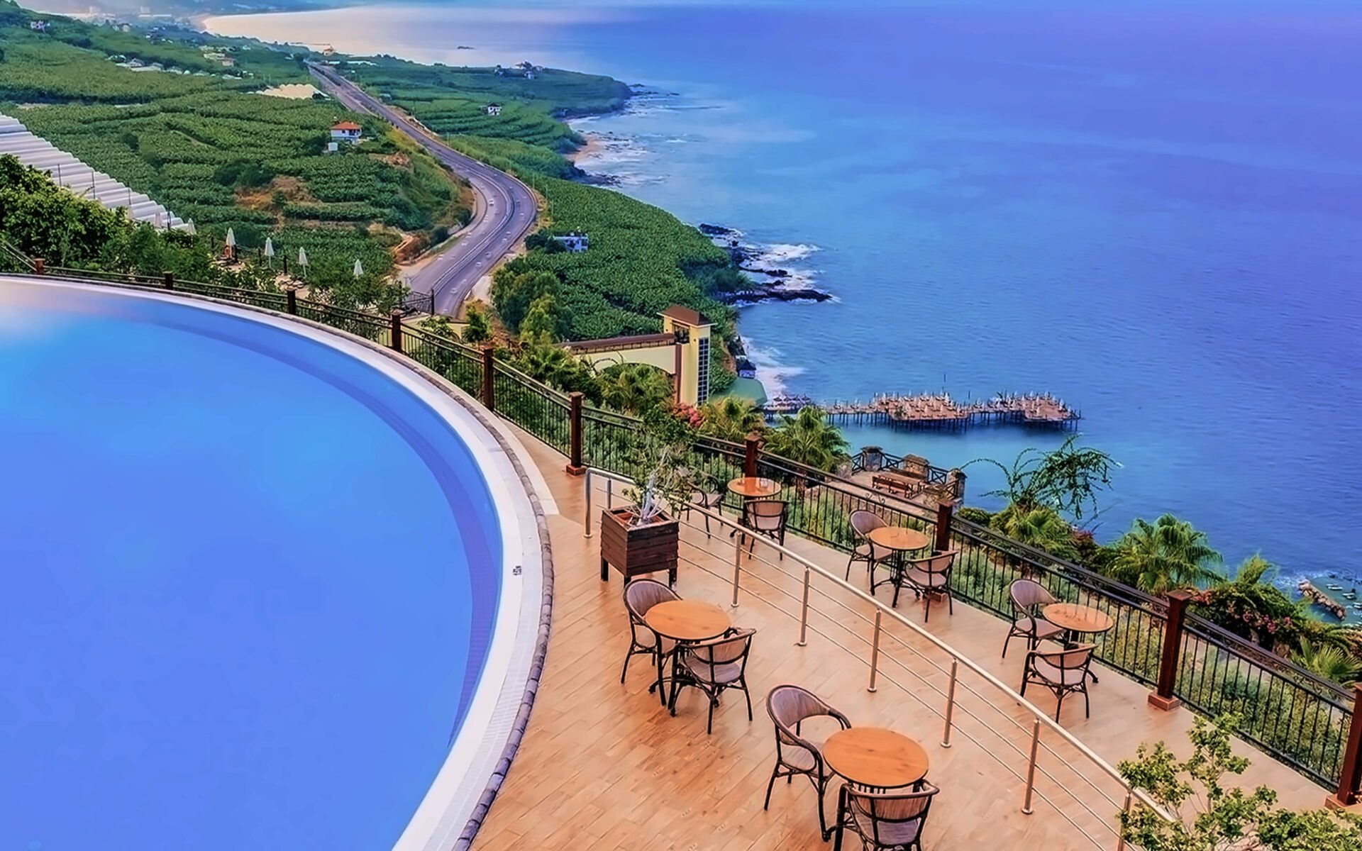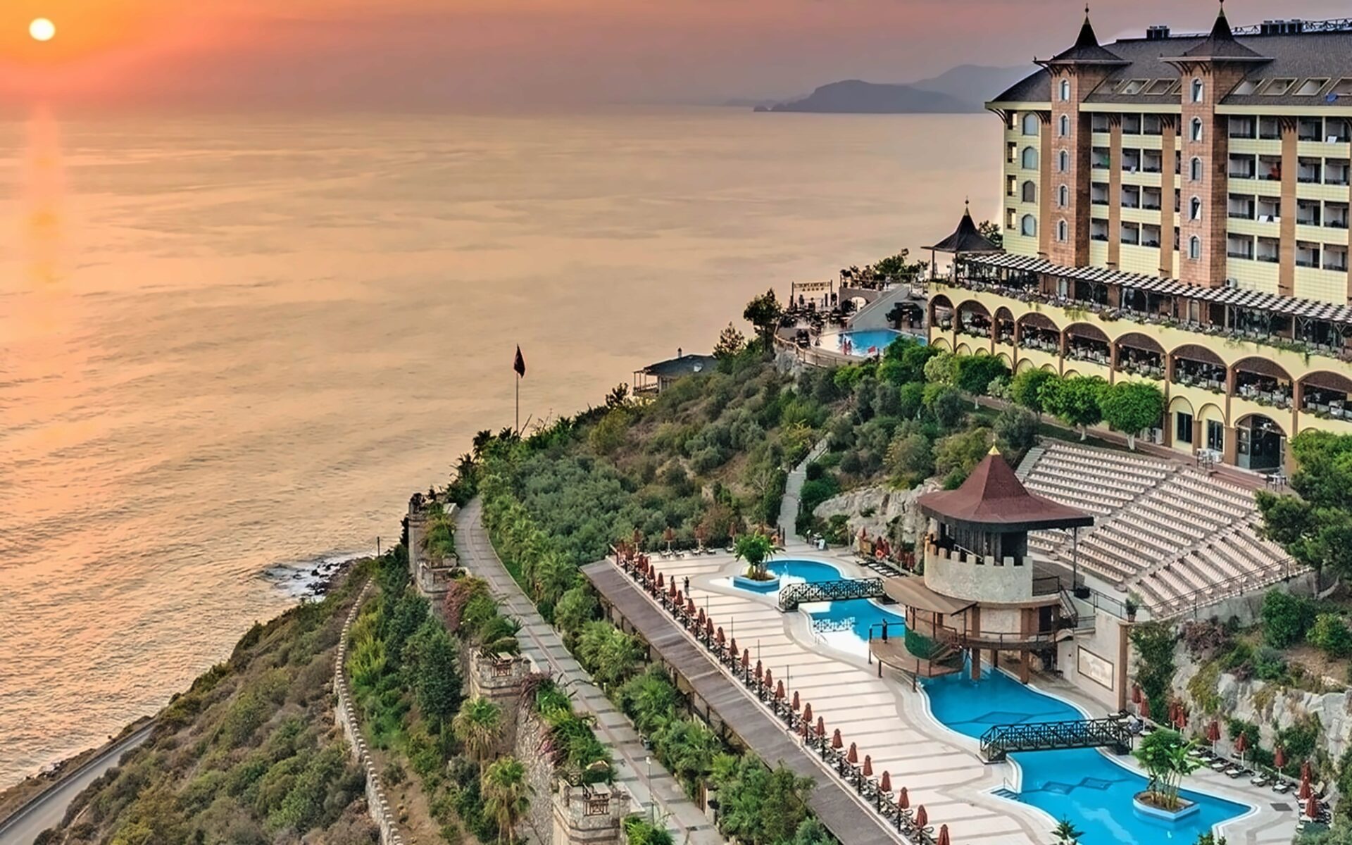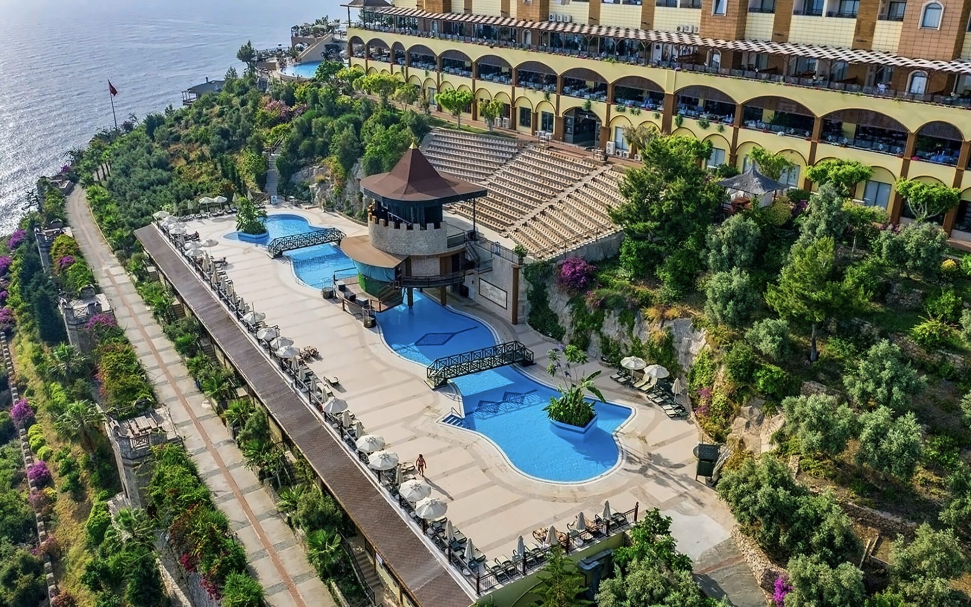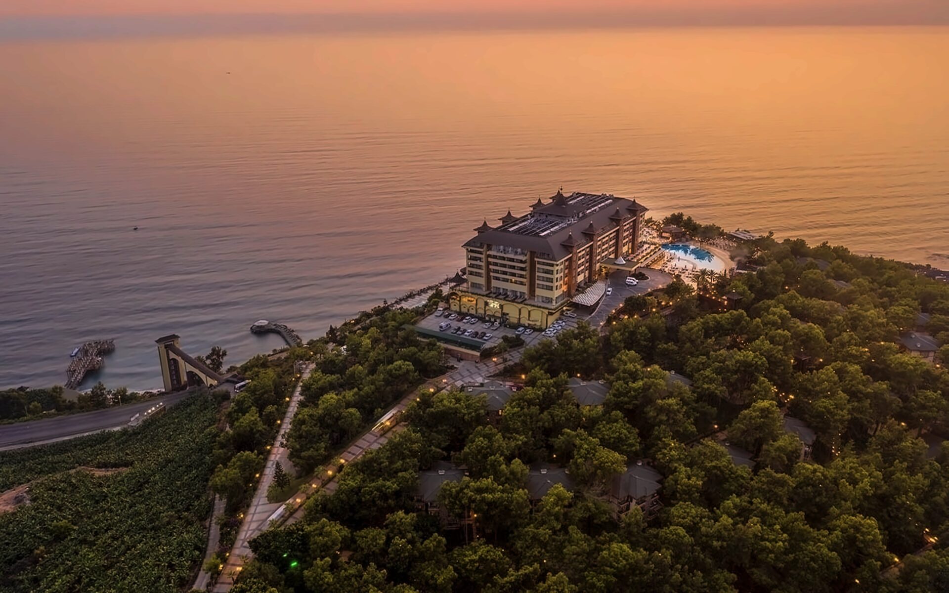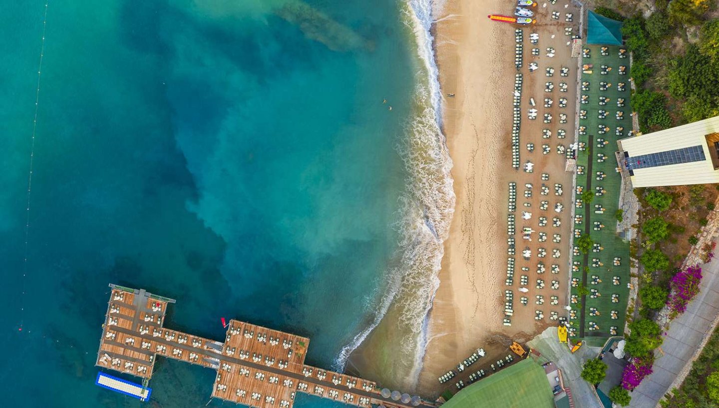 Viesnīca Utopia World atrodas uz klints Alanjas piekrastē, senās pilsētas Siedras vietā. No logiem paveras skats uz Vidusjūru. Viesnīca piedāvā Zilā karoga privāto pludmali ar 2 piestātnēm, āra baseiniem, ūdens atrakciju parku un SPA ar tradicionālo hamamu, kā arī vairākus a la carte restorānus. Viesnīca ir piemērota ģimenēm ar bērniem.