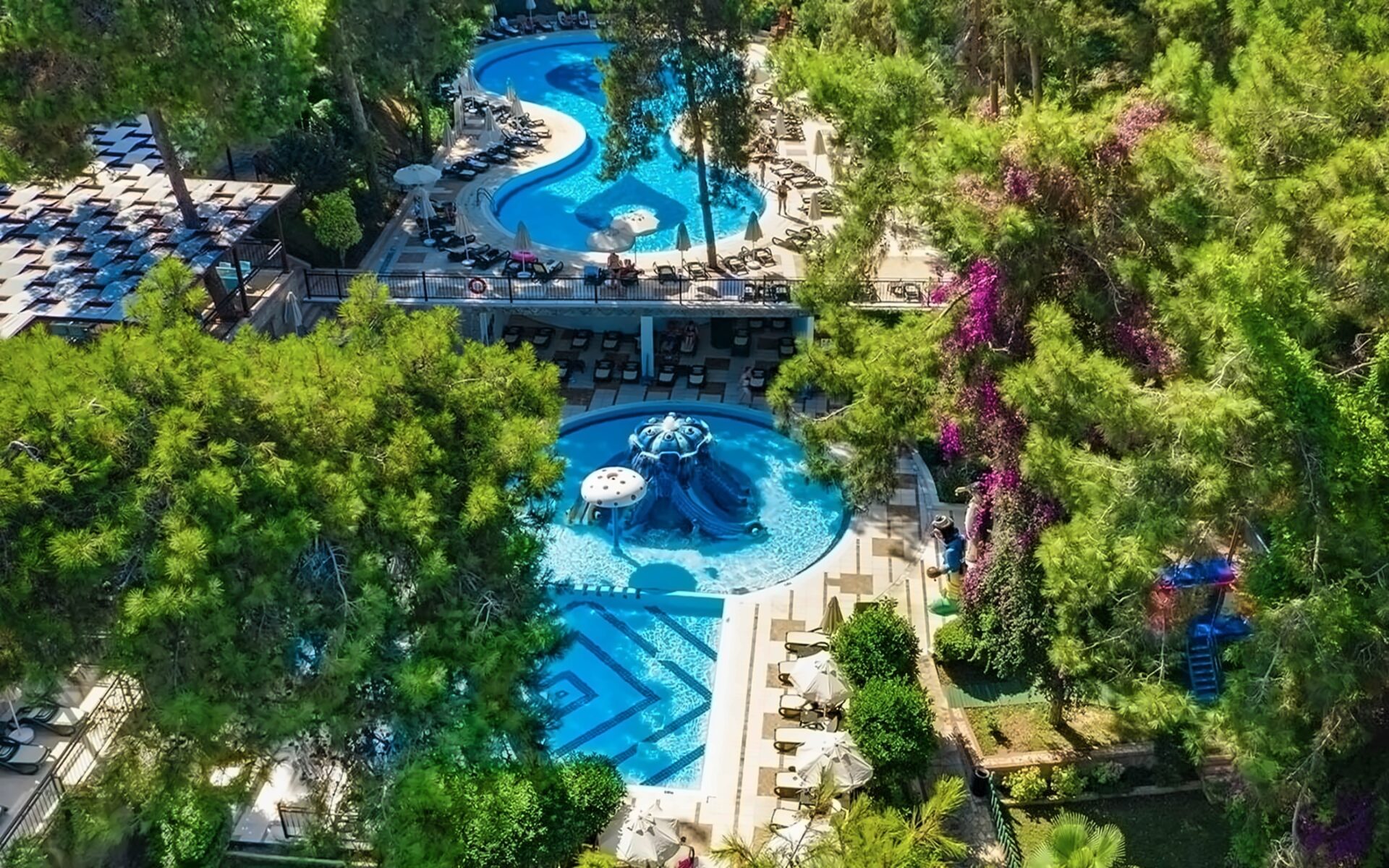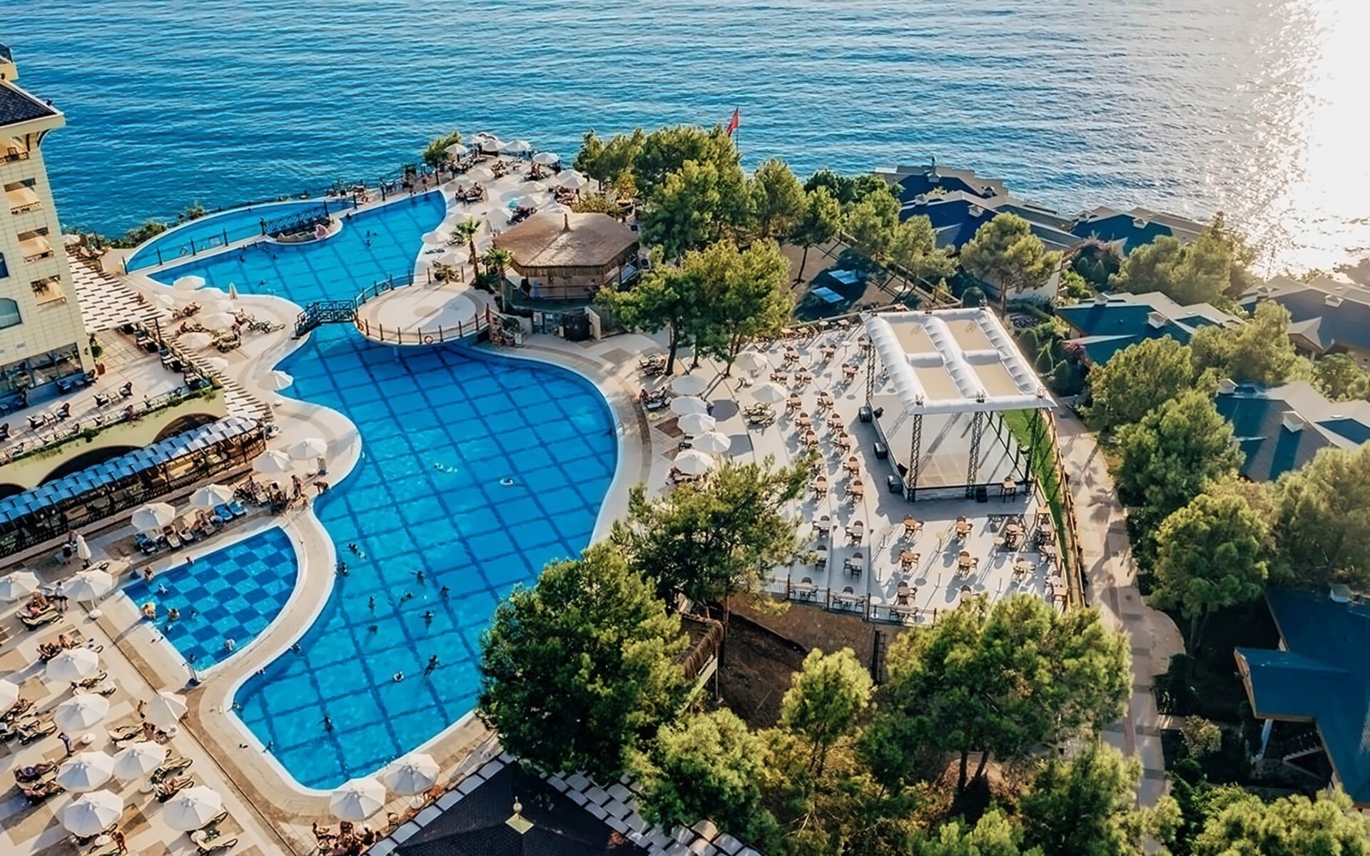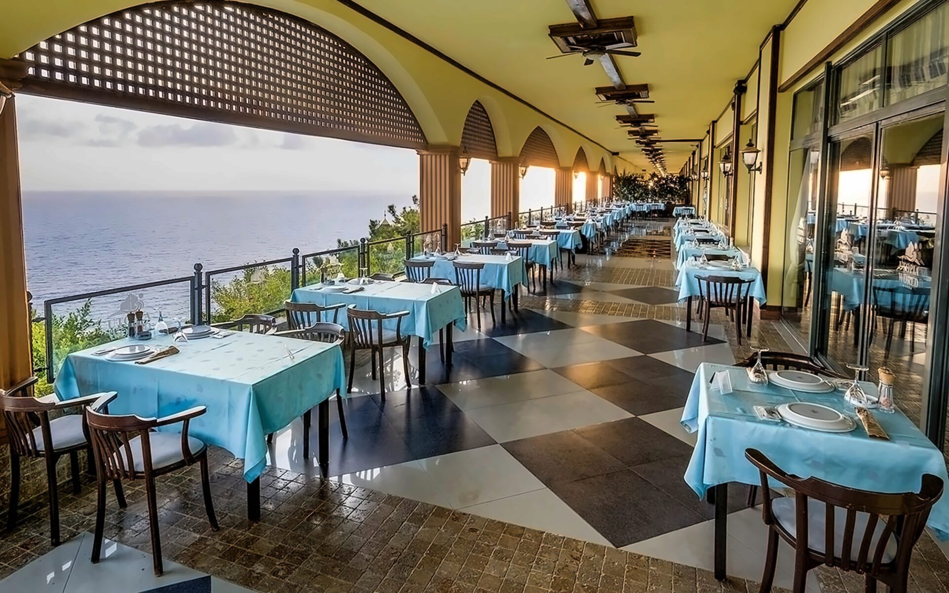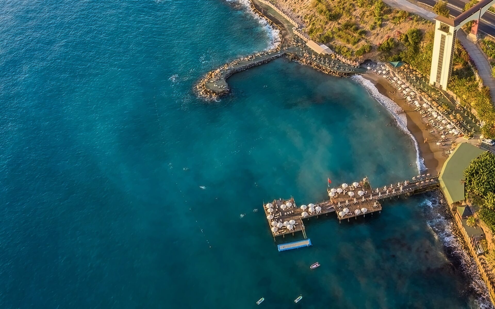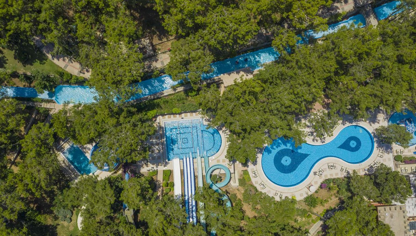 Viesnīca Utopia World atrodas uz klints Alanjas piekrastē, senās pilsētas Siedras vietā. No logiem paveras skats uz Vidusjūru. Viesnīca piedāvā Zilā karoga privāto pludmali ar 2 piestātnēm, āra baseiniem, ūdens atrakciju parku un SPA ar tradicionālo hamamu, kā arī vairākus a la carte restorānus. Viesnīca ir piemērota ģimenēm ar bērniem.