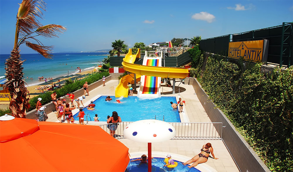 Antik Hotel Alanya расположен в регионе Инджекум, недалеко от поселка Авсаллар. Отель выделяется своей уникальной архитектурой и территорией, окруженной садами, что создает спокойную атмосферу для отдыха. Он состоит из двух зданий – главного здания и корпуса Garden, которые соединены подземным переходом, обеспечивающим удобный доступ ко всем удобствам. Гостям доступен частный песчаный участок пляжа, который является одним из лучших в этом регионе. На территории отеля имеются бассейны, рестораны и различные возможности для развлечений для путешественников всех возрастов.