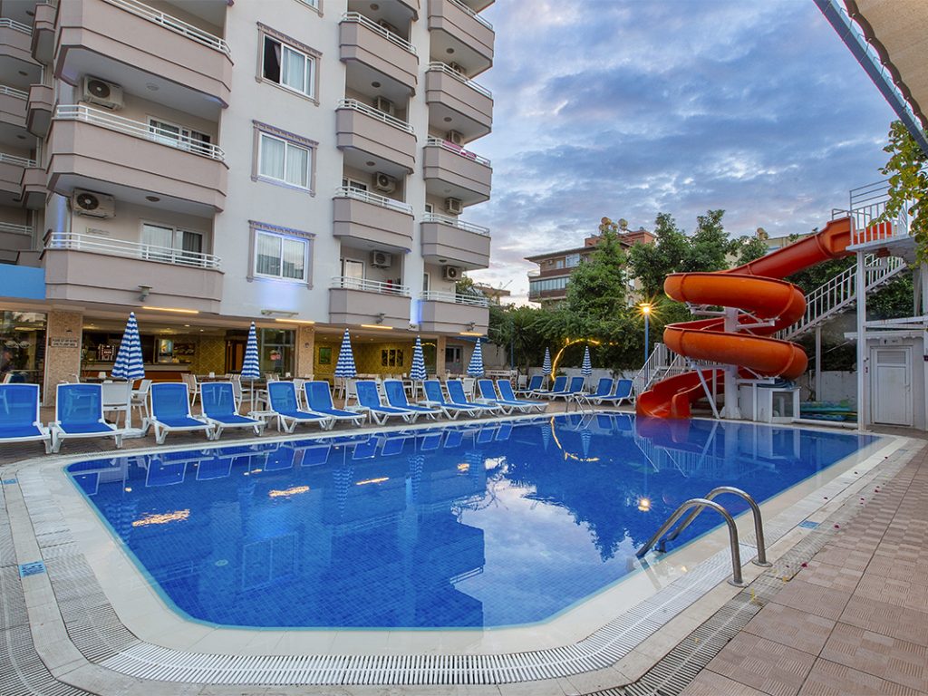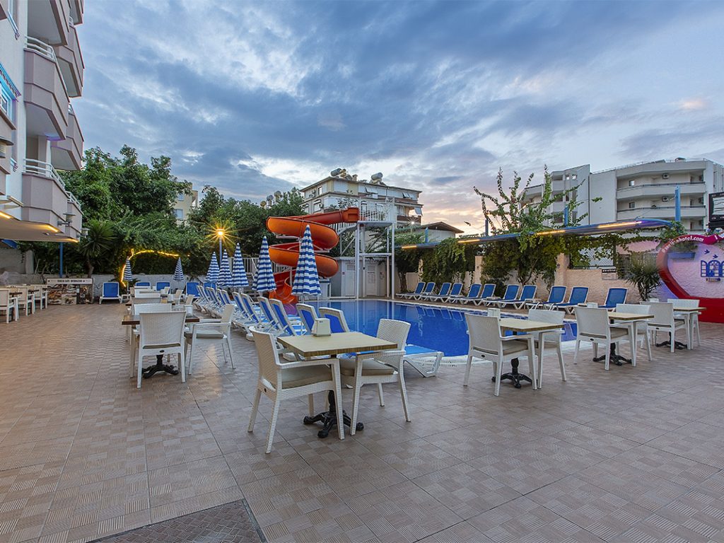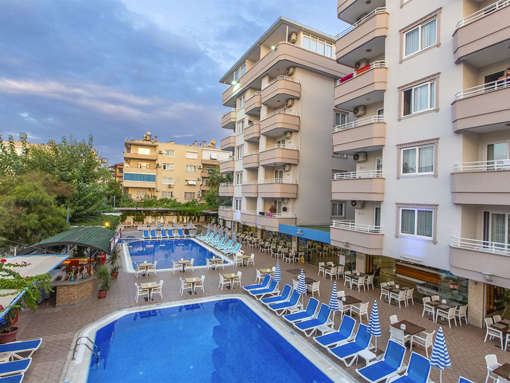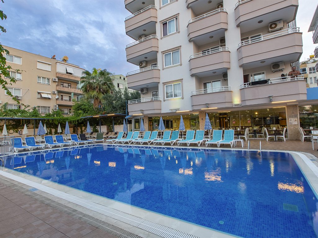 Отель расположен на побережье Аланьи, в 800 м от центра города и в 300 м от пляжа. Отель имеет компактную территорию и все необходимое для отдыха гостей. На территории отеля есть бар и ресторан с обслуживанием по меню, а также бассейн. По вечерам проводятся развлекательные мероприятия.