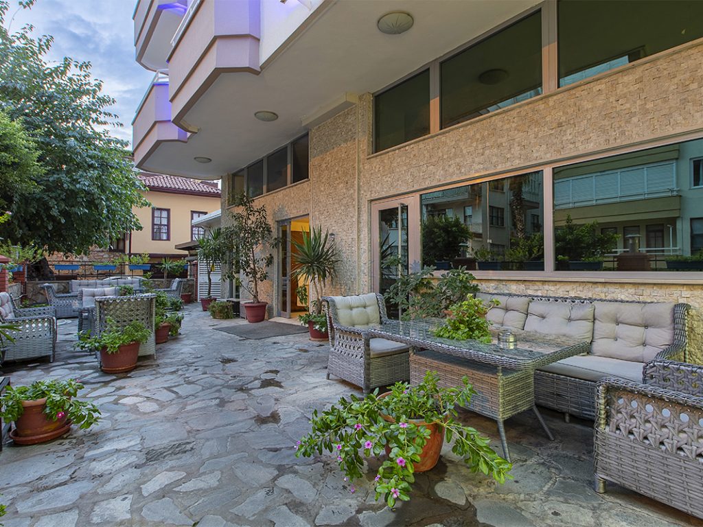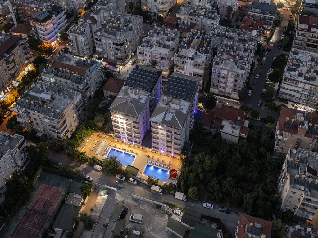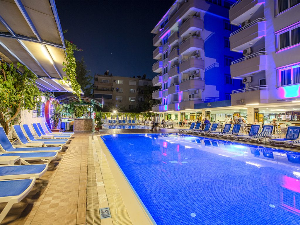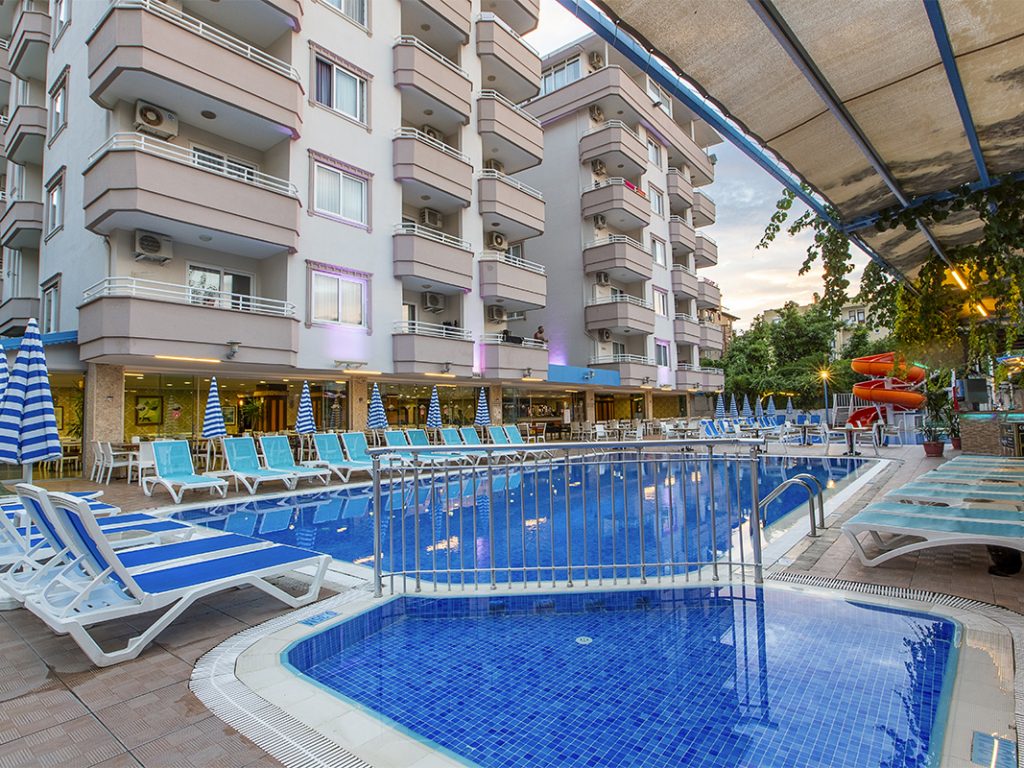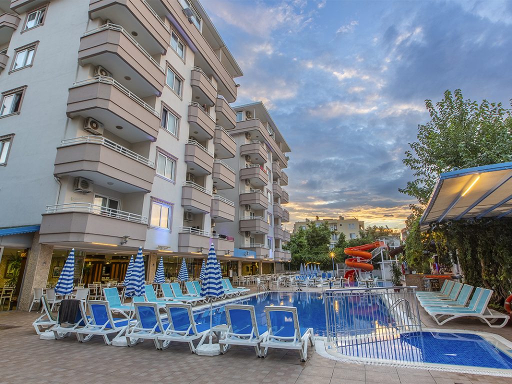 Отель расположен на побережье Аланьи, в 800 м от центра города и в 300 м от пляжа. Отель имеет компактную территорию и все необходимое для отдыха гостей. На территории отеля есть бар и ресторан с обслуживанием по меню, а также бассейн. По вечерам проводятся развлекательные мероприятия.