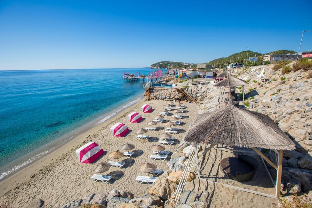 Расстояние до моря примерно 20 м, между пляжем и отелем проходит пешеходная дорожка