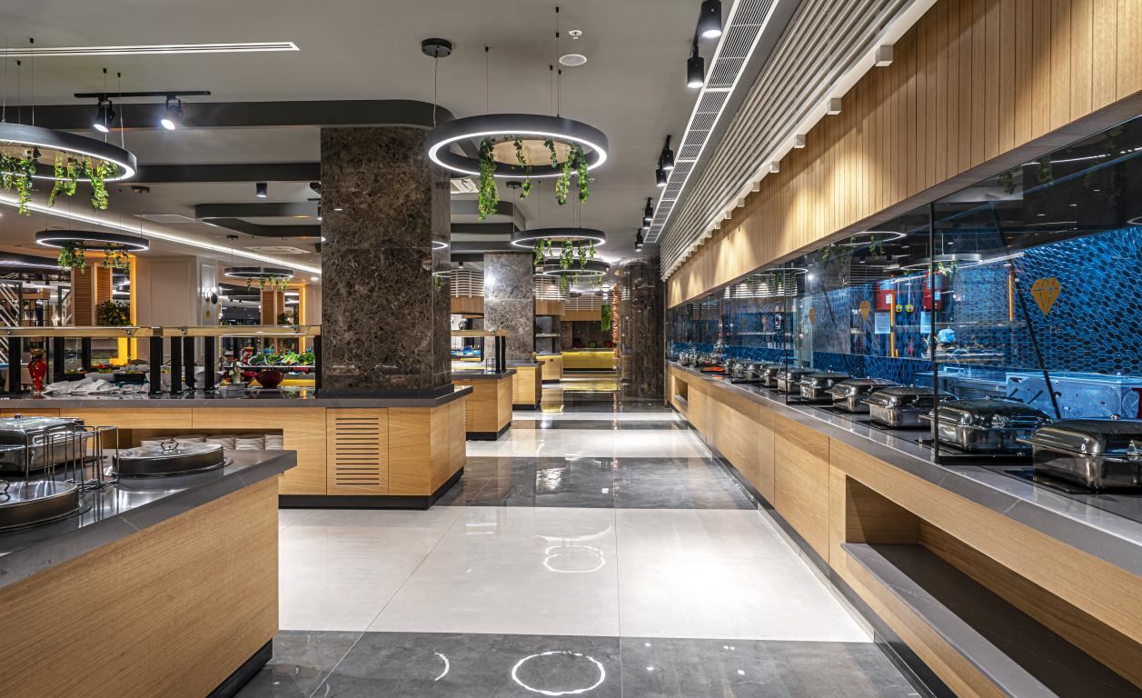 4 a la carte ресторана (турецкий, итальянский, рыбный – по предварительному бронированию, 1 бесплатное посещение за 7 ночей проживания; стейк-ресторан – за дополнительную плату)