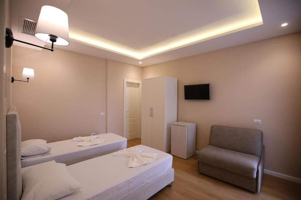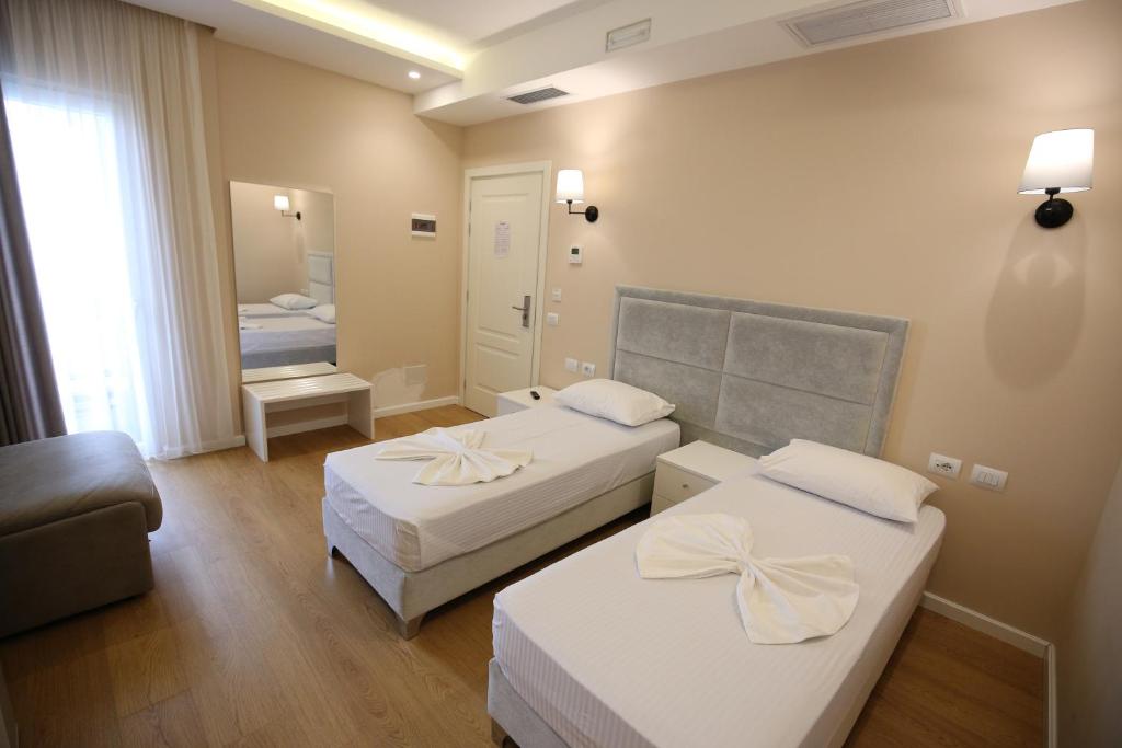 Отель предлагает номера, оснащенные всеми необходимыми удобствами, включая отдельную ванную комнату, кондиционер и телевизор. В ресторане отеля подают вкусные блюда традиционной албанской кухни. Отель удобно расположен рядом с пляжем.