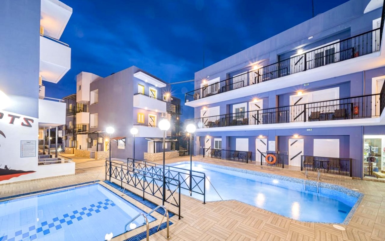 Отель находится всего в нескольких минутах ходьбы от центра Малии. В отеле есть открытый основной и детский бассейны с зоной для загара, а также ресторан, предлагающий блюда критской кухни, и бар у бассейна. Это место подходит для семей, пар и друзей, которые хотят остаться здесь на ночь во время отпуска, так как поблизости есть множество развлечений и мероприятий.