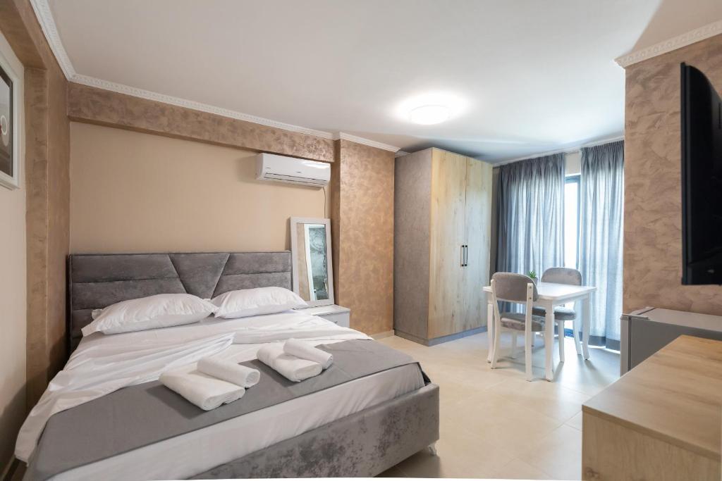 Hotel Apart Resilient расположен в Дурресе, Албания, недалеко от побережья Адриатического моря. Отель предлагает размещение апартаментного типа с оборудованной кухней. Номера оснащены кондиционером, собственной ванной комнатой и балконом или террасой (в зависимости от категории). В распоряжении гостей бесплатный Wi-Fi и парковка. Объект находится недалеко от пляжа Дурреса, местных кафе, магазинов и остановок общественного транспорта. Благодаря формату апартаментов отель подходит для семей и путешественников, ценящих самостоятельность и комфорт. Атмосфера спокойная и подходит для отдыха у моря.