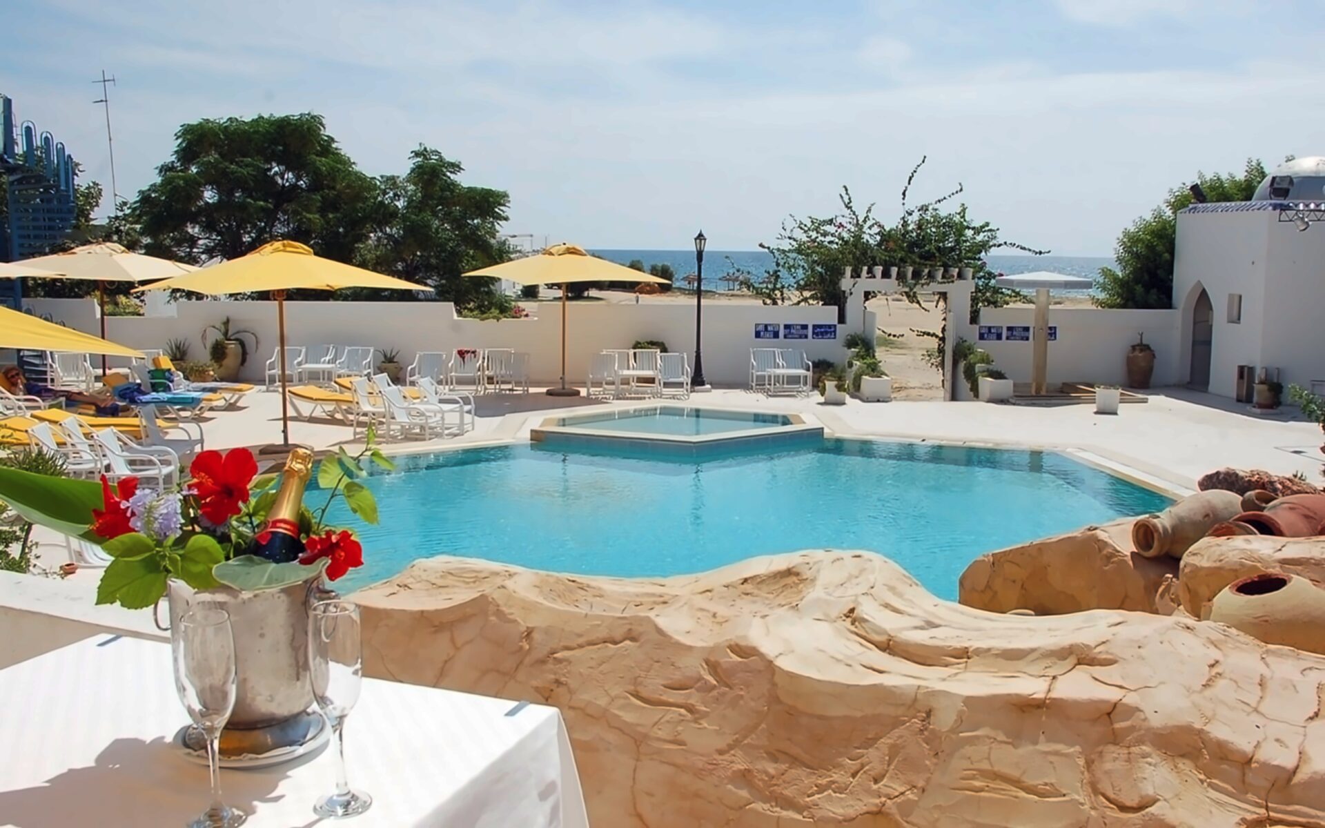 Hotel Byzance – уютный отель, расположенный в городе Набёль, Тунис, прямо на побережье Средиземного моря. Он находится всего в 500 метрах от центра города и традиционных рынков, предлагая гостям удобный доступ к местным достопримечательностям. В отеле есть частный пляж, открытый бассейн, фитнес-центр и SPA-зона с джакузи, сауной и хаммамом.