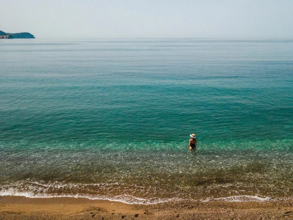 вход в море: мелкая галька