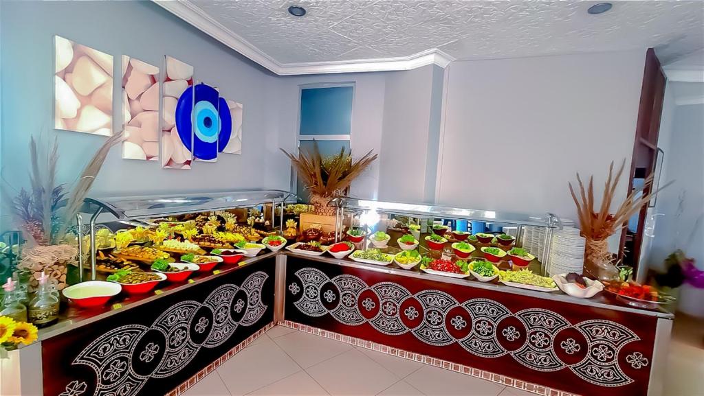 Современные номера отеля Kleopatra Arsi оснащены всем необходимым для комфортного проживания: балкон, кондиционер, телевизор, собственная ванная комната с феном и душем. К услугам гостей открытый бассейн с шезлонгами и зонтиками, сауна, турецкая баня, массажные процедуры и бесплатный Wi-Fi.
