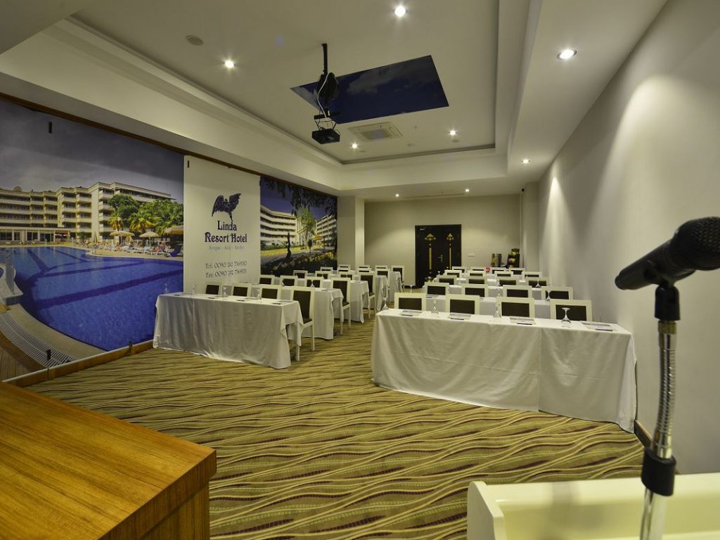 Отель Linda Resort расположен в 50 метрах от озера Титрин и в 5 км от Сиде. В ресторане подают завтрак «шведский стол», обед и ужин. В баре в течение дня предлагаются освежающие напитки и коктейли. К услугам гостей турецкая баня, сауна, массажный кабинет, открытый и закрытый бассейны с водными горками и тренажерный зал. Его песчаный пляж находится в 600 метрах. Отель состоит из одного 5-этажного здания.