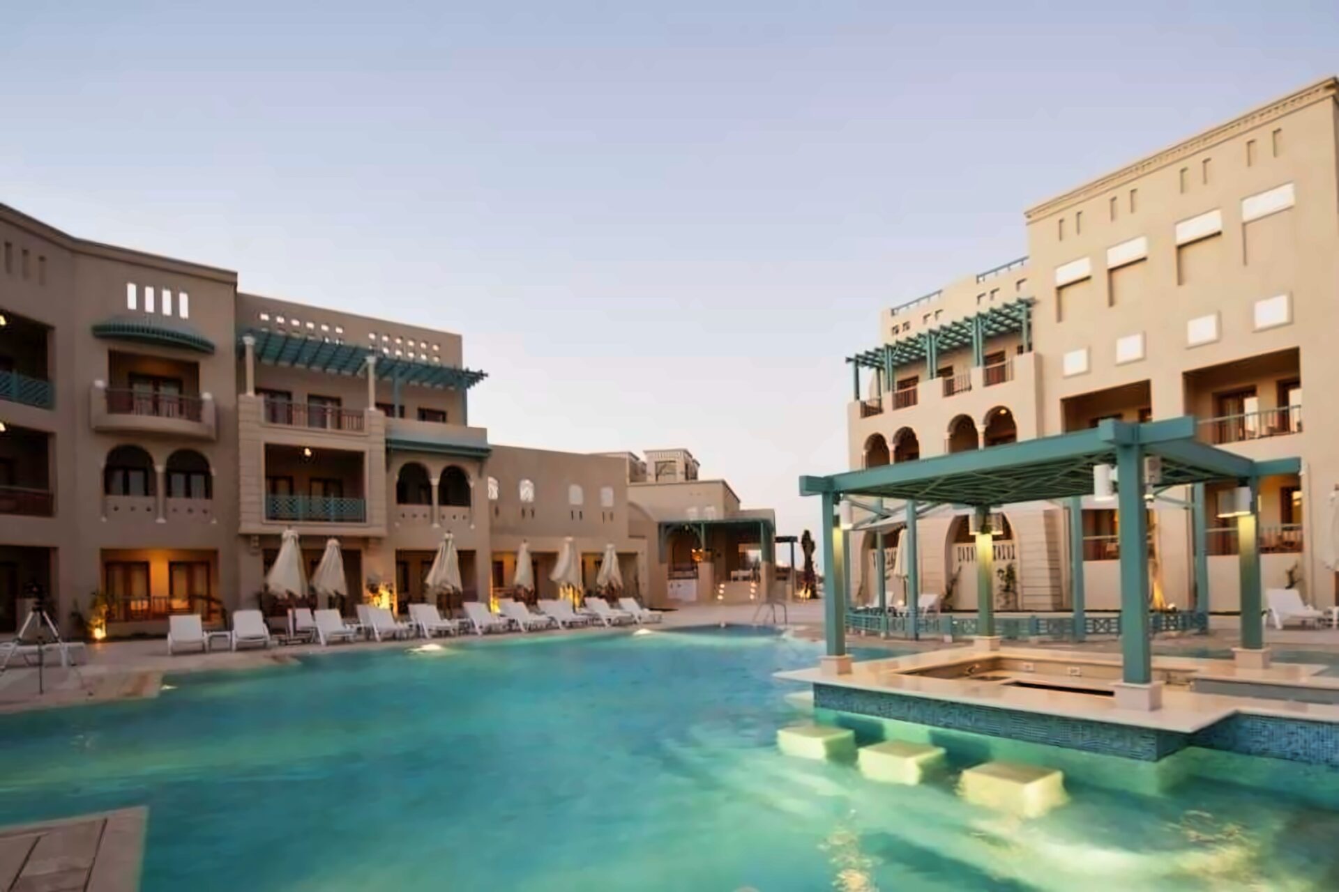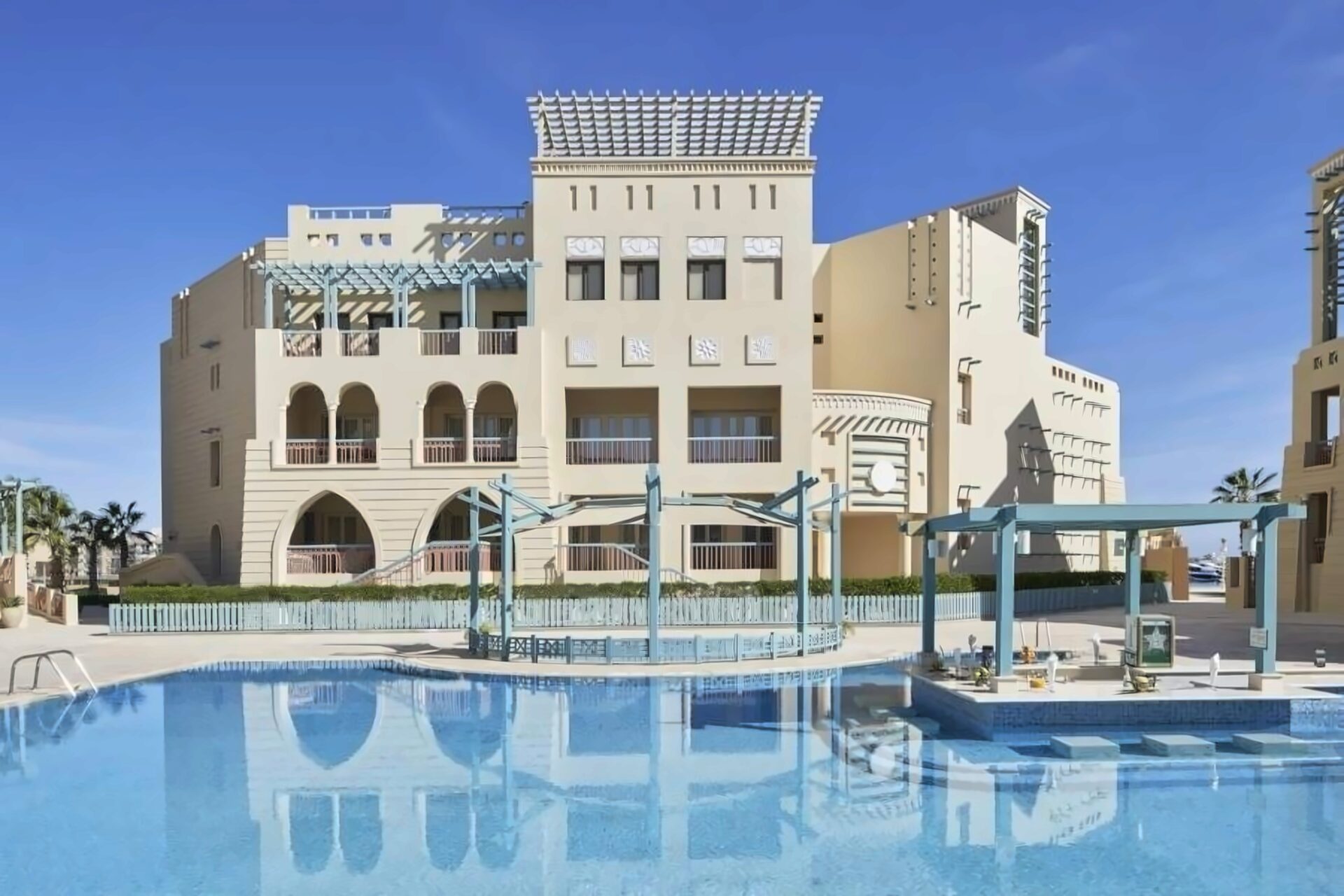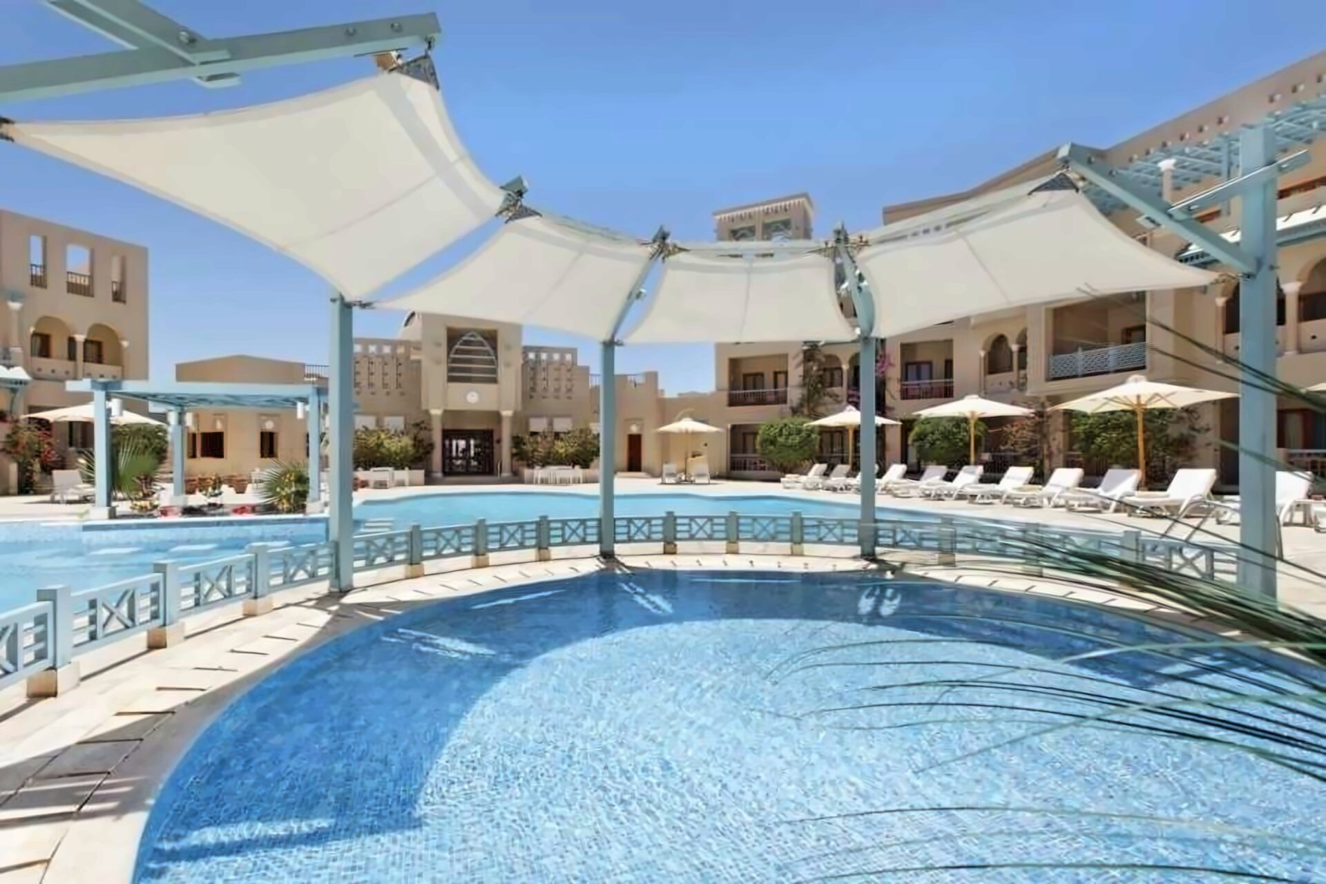 Отель построен вокруг бассейна площадью 260 квадратных метров и выходит окнами на пристань Эль-Гуна на Красном море. Международный аэропорт Хургады находится в 22 км.