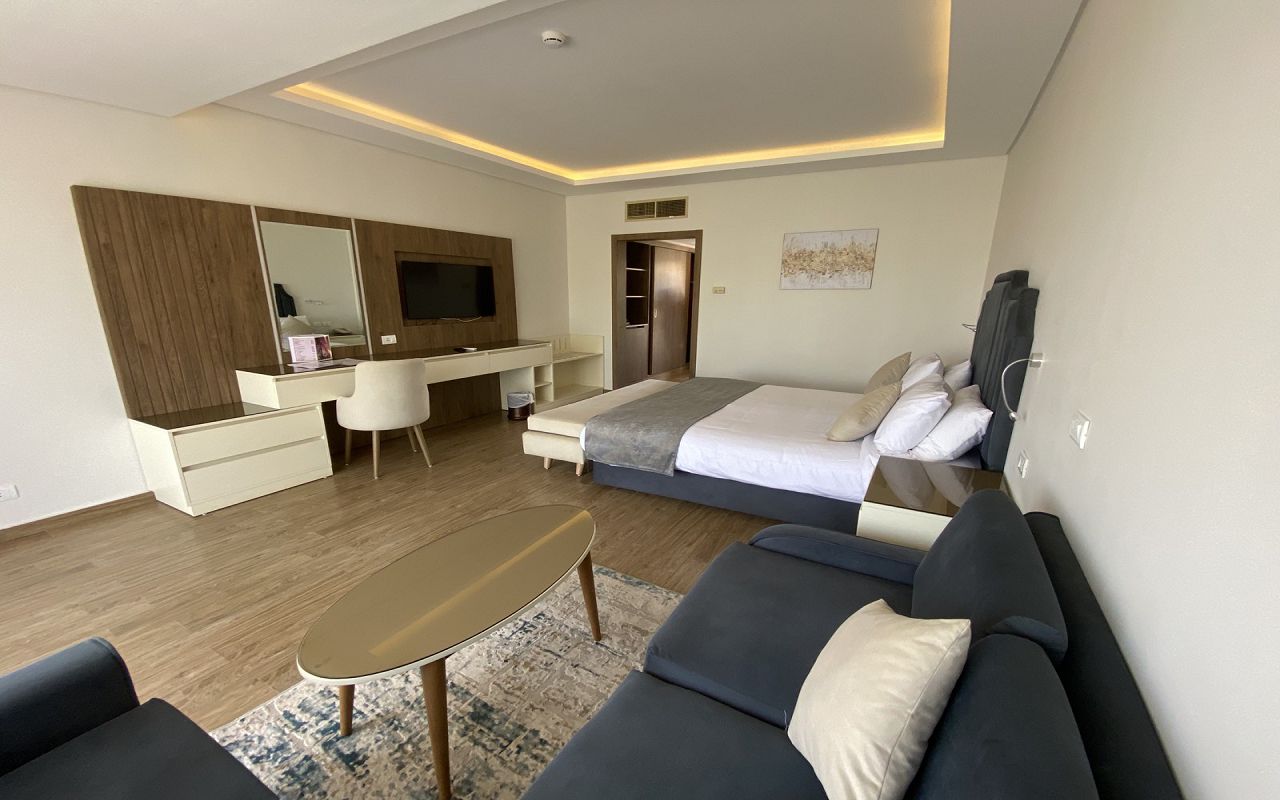 Junior Family Suite Partial Sea View – площадь номера: 90 м2. Максимальное количество гостей в одном номере: 2+2 / 3+1.