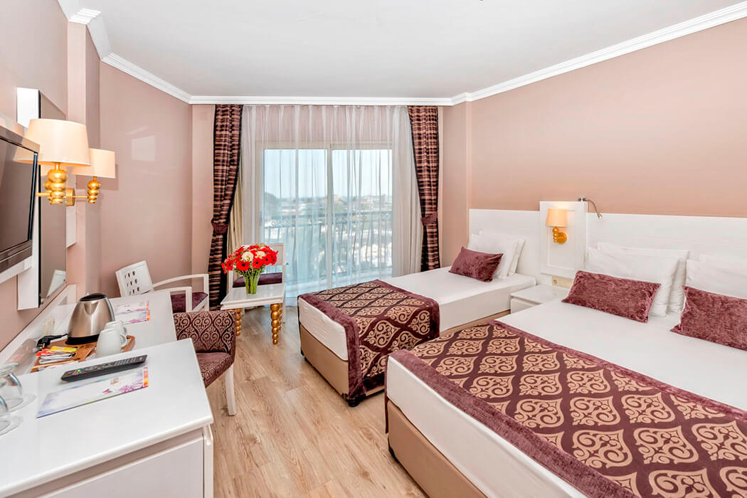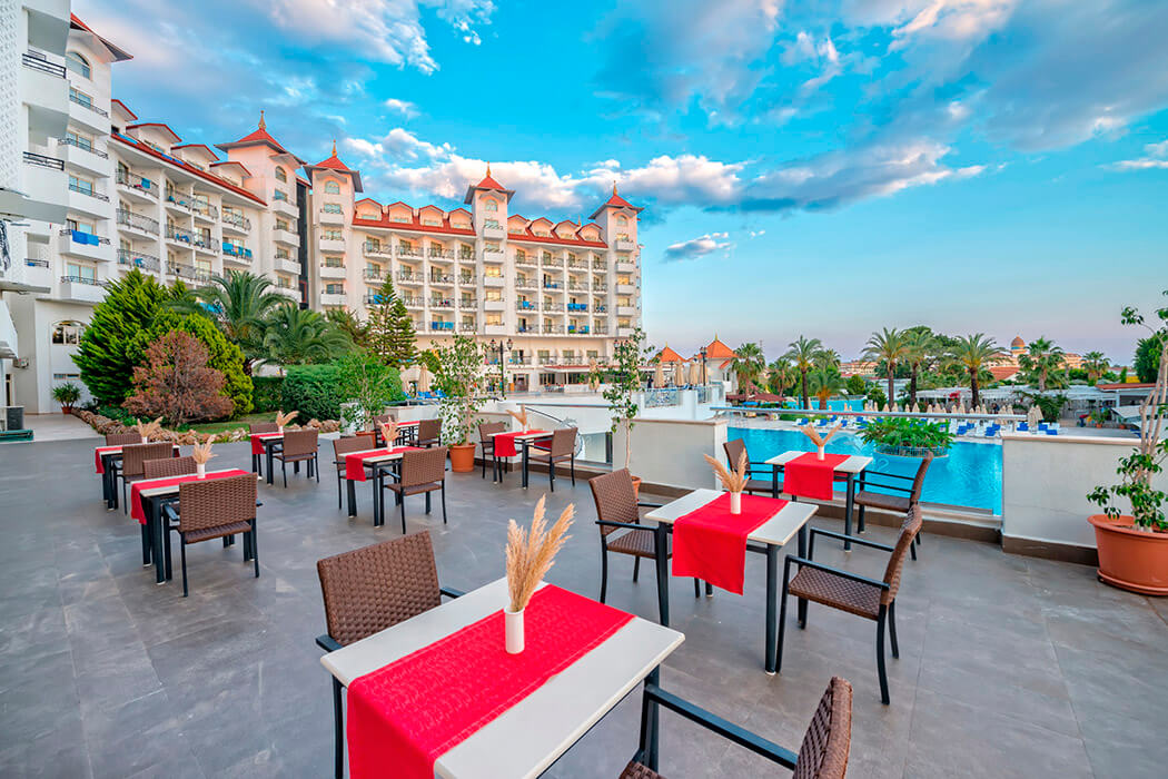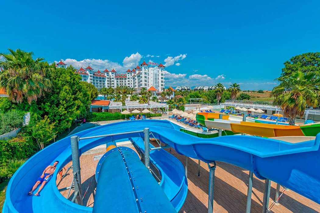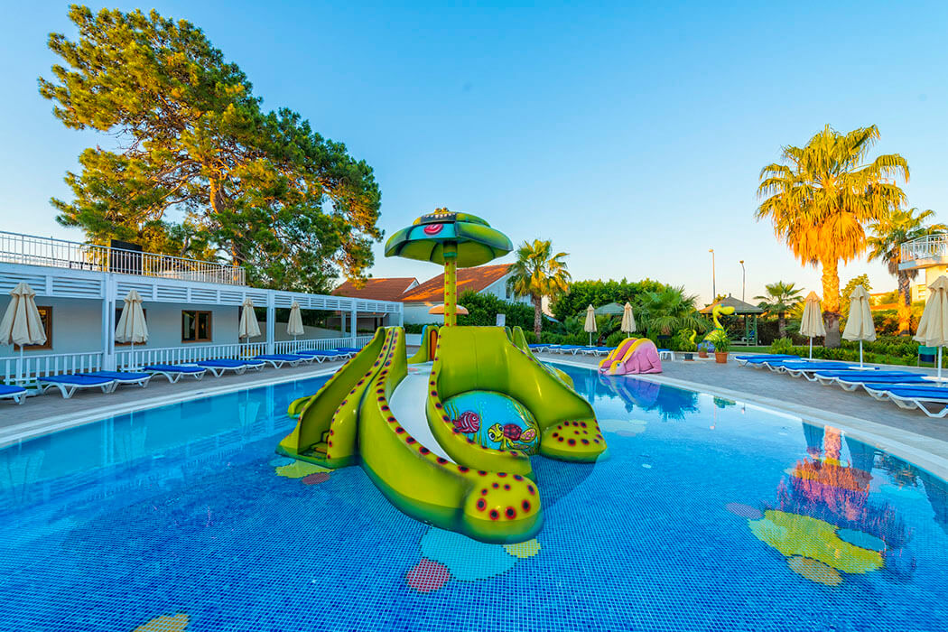 Отель расположен в районе Сиде, в Кумкой, в 3 км от знаменитых исторических и природных красот древнего города. Разнообразное питание, уютные номера. В отеле оригинальный ландшафт, а также бассейн с волнами, 2 детских бассейна и 2 горки. Состоит из основного 6-этажного здания. Рекомендую для спокойного семейного отдыха.