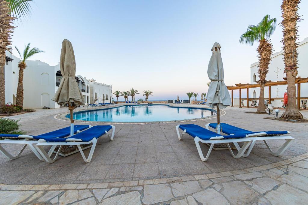 В гостиничном комплексе имеется 7 открытых бассейнов: 5 бассейнов в Sharm Plaza (Roman, Diving, Lagoon, Beach, Health Club) и 2 бассейна в Sharm Resort (около корпусов 8 и 9), 6 открытых бассейнов – без подогрева, бассейн возле СПА-центра – с подогревом в зимний период, бассейн с 2 горками для взрослых и 2 мини-горками для детей – без подогрева, бассейн для прыжков — без подогрева (глубина 3 м).