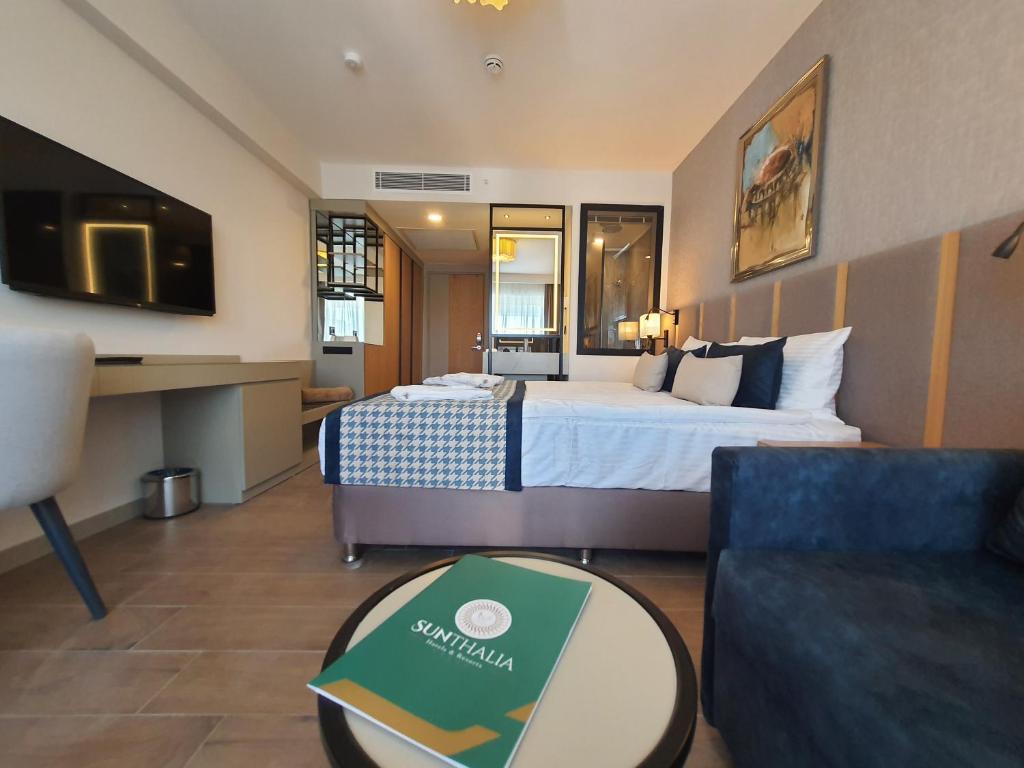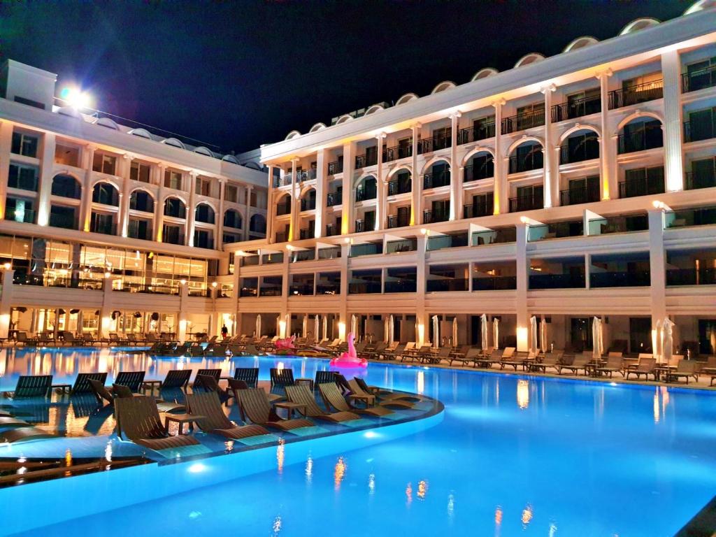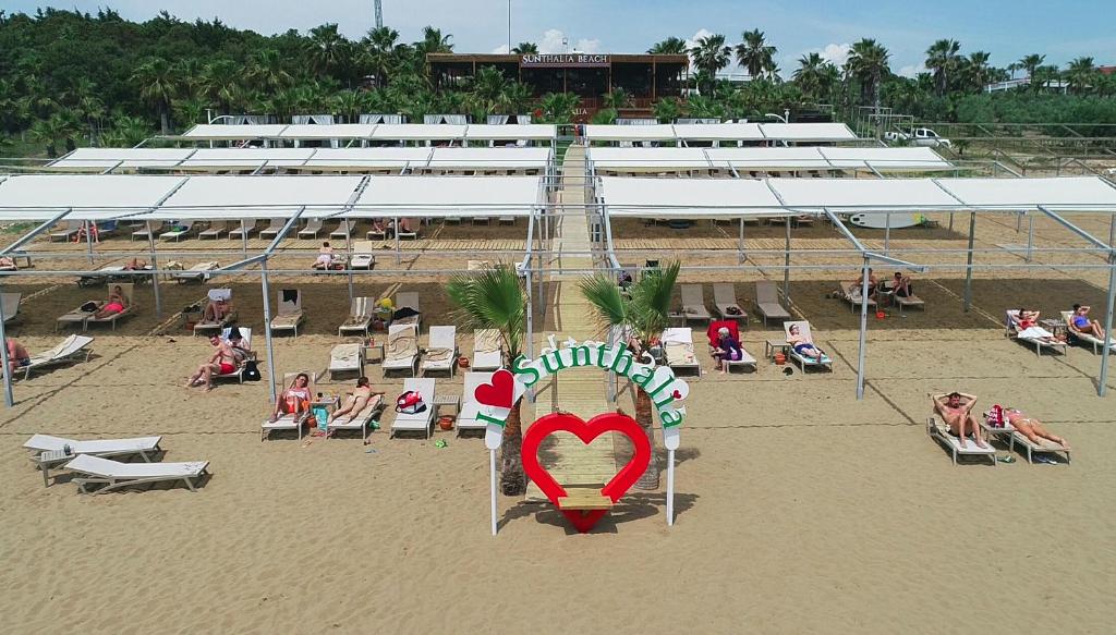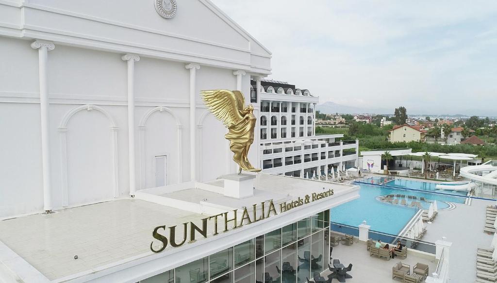 Sunthalia Hotels & Resorts – большой отель в Сиде, расположенный на третьей береговой линии, в 500 метрах от пляжа. На территории есть открытые бассейны для взрослых и детей, водные горки, крытый бассейн, шезлонги и зонтики для гостей. В отеле есть тренажерный зал, СПА-центр, множество ресторанов, в том числе a la carte, а также бары в лобби, у бассейна, на пляже и в других местах. Отель работает по системе «ультра все включено». В главном ресторане проводятся различные тематические вечера. Отель также предлагает занятия йогой, пляжный волейбол, дартс, настольный теннис, а также развлекательные мероприятия. Номера оформлены в современном стиле и оборудованы балконом, кондиционером, сейфом, телевизором и феном.