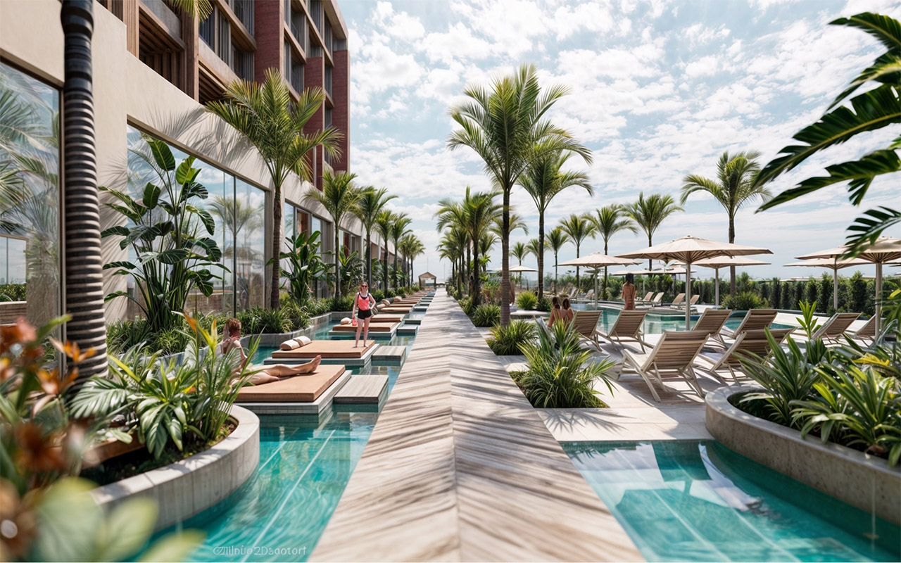 Новый современный семейный отель предлагает гостям активный отдых. На территории есть несколько бассейнов, различные рестораны с барами, фитнес-центр и СПА. Гостям отеля предоставляется трансфер до пляжа. Для всех отдыхающих, в том числе и для детей, предусмотрены различные виды развлечений: анимация, дневные и вечерние развлекательные программы, дискотека, клуб. Детей приглашают провести время в детском клубе.