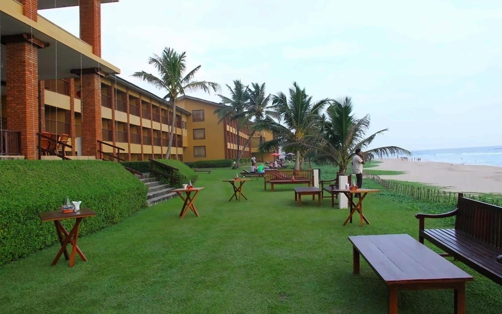 Расположен прямо на 3-километровом песчаном пляже