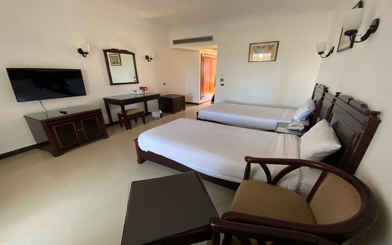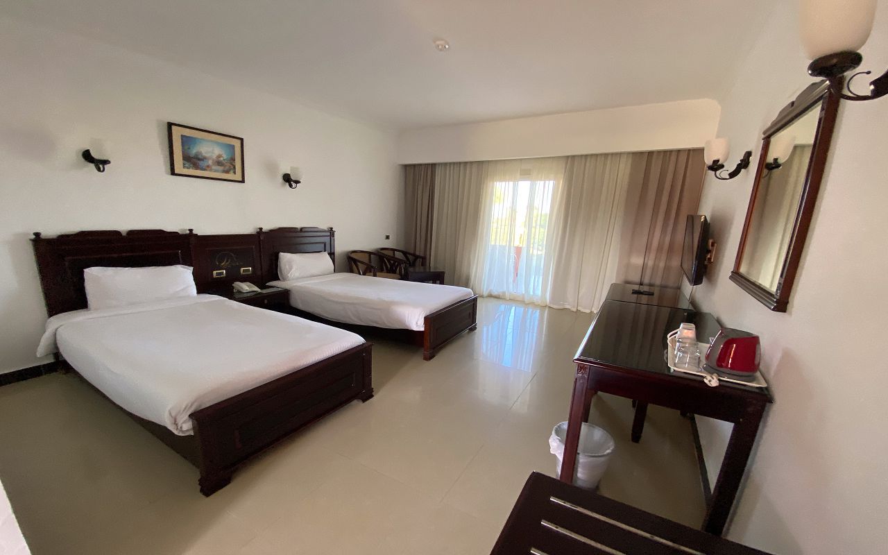 Grand Room – двухкомнатные апартаменты. Двуспальная кровать и две односпальные кровати. Есть межкомнатная дверь. Две ванные комнаты. Вид на территорию отеля. Размер номера: 30 м2. Максимальное количество гостей (включая детей): 4.