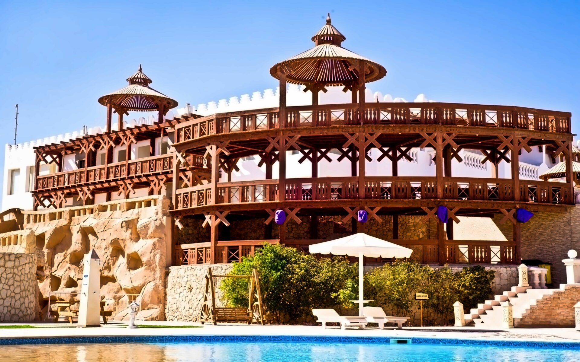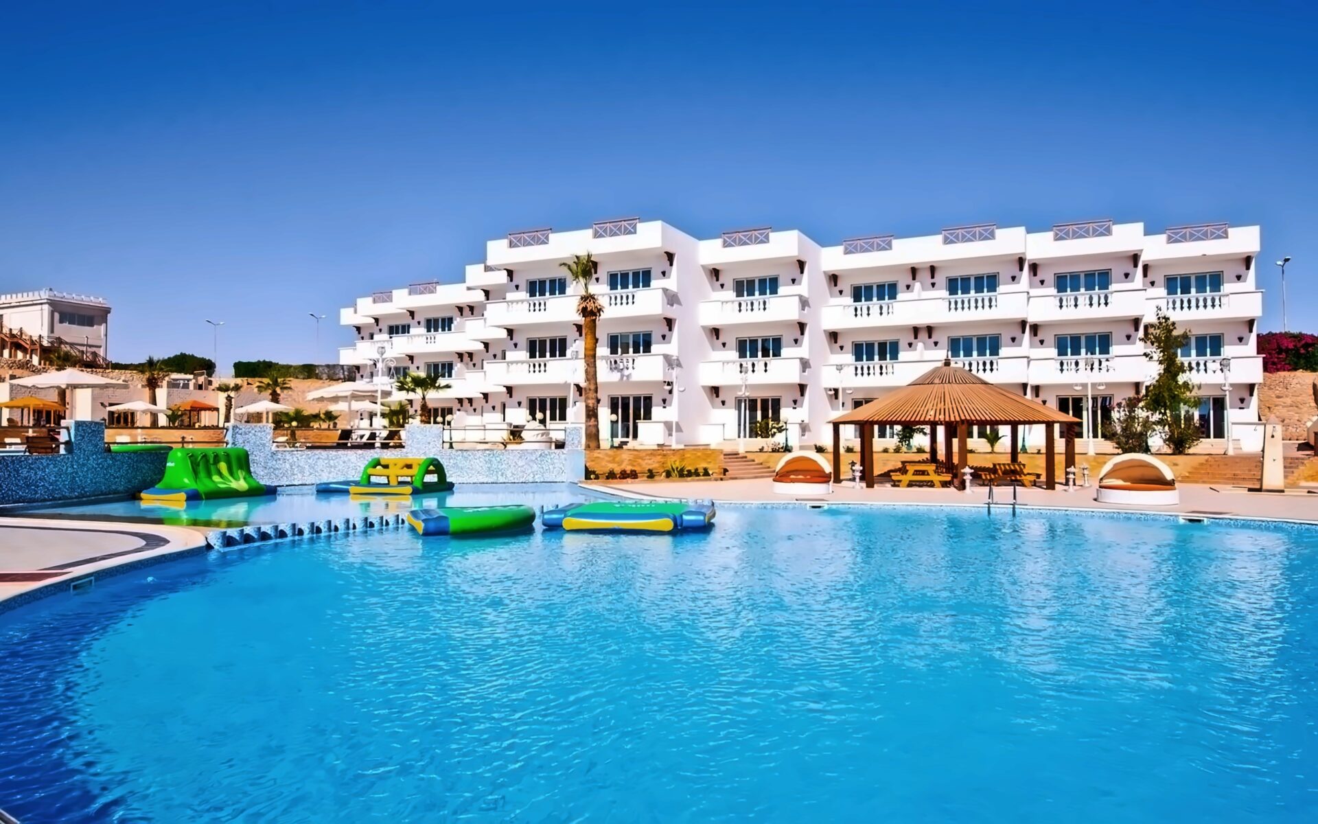 VIE Palma Di Sharm – это современный отель, расположенный на территории парка развлечений Hollywood Park. Кроме доисторических животных, в Голливудском комплексе есть множество сказочных персонажей и героев известных фильмов. Поющий фонтан – настоящее украшение парка. Гости отеля могут каждый вечер бесплатно посещать шоу и наслаждаться фонтаном. Кроме того, в шаговой доступности от бухты Наама находятся многочисленные сувенирные лавки, кафе и рестораны.