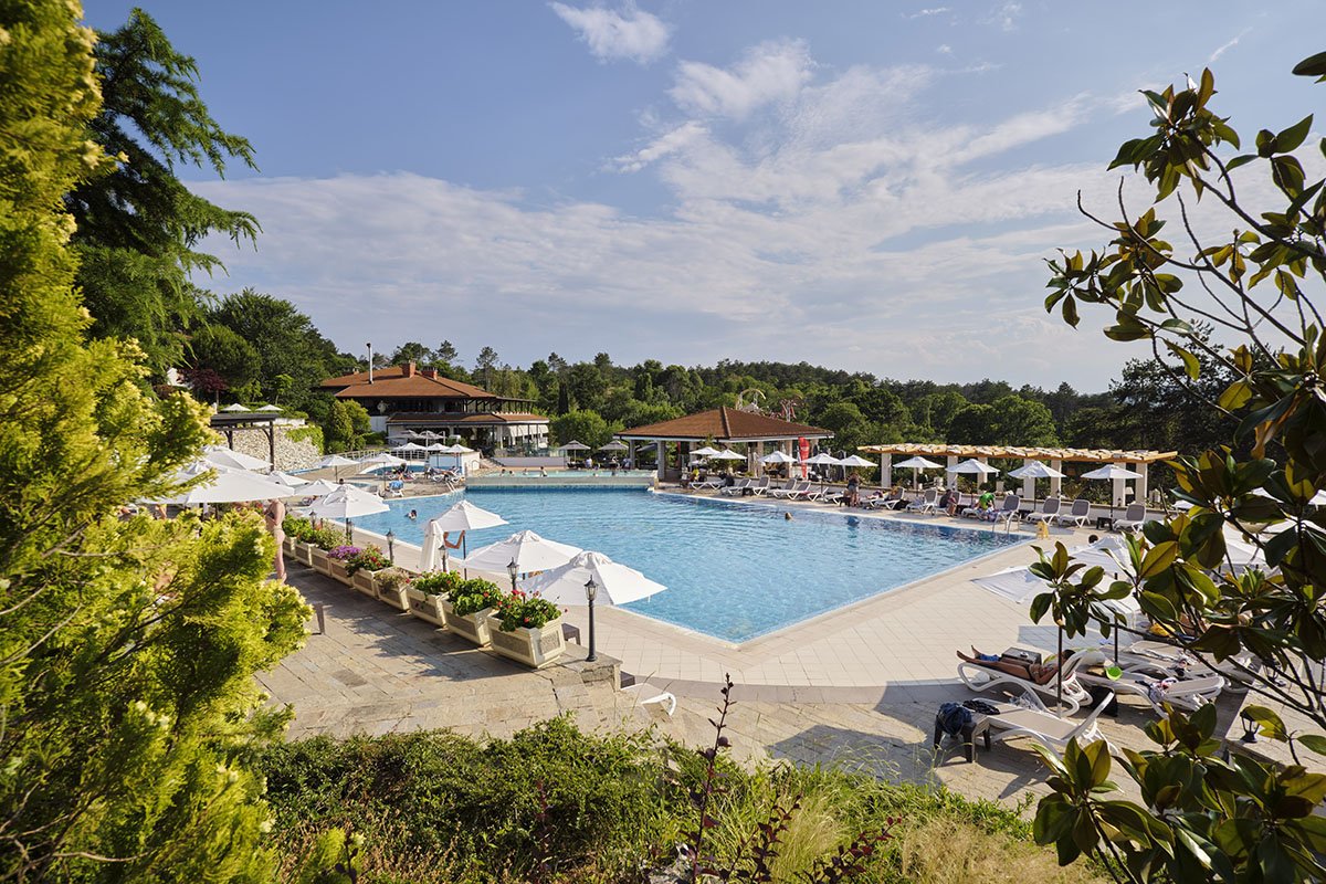 Зонты у бассейна рядом с отелем Santa Marina Holiday Village)