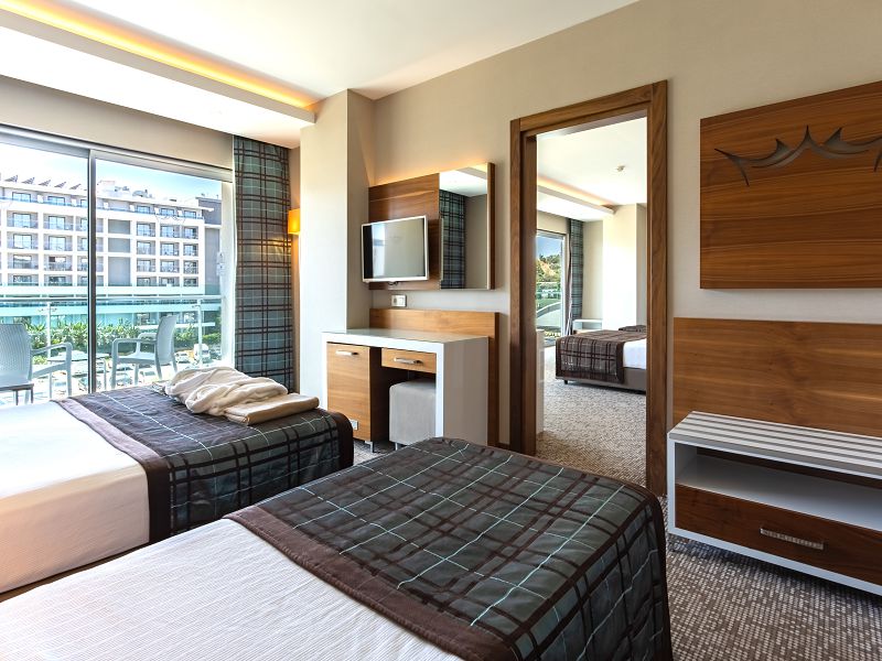 Большой отель, окруженный зеленью, на первой береговой линии недалеко от Алании. На территории есть несколько бассейнов для детей и взрослых, аквапарк, фитнес-центр, множество магазинов, массажный кабинет, соляная и паровая баня в спа-центре The White Sense и детский клуб. В отеле есть главный ресторан, а также несколько ресторанов и баров a la carte: в холле, у бассейна, на пляже и другие. Отель предлагает номера со всеми основными удобствами, с видом на море или территорию отеля.