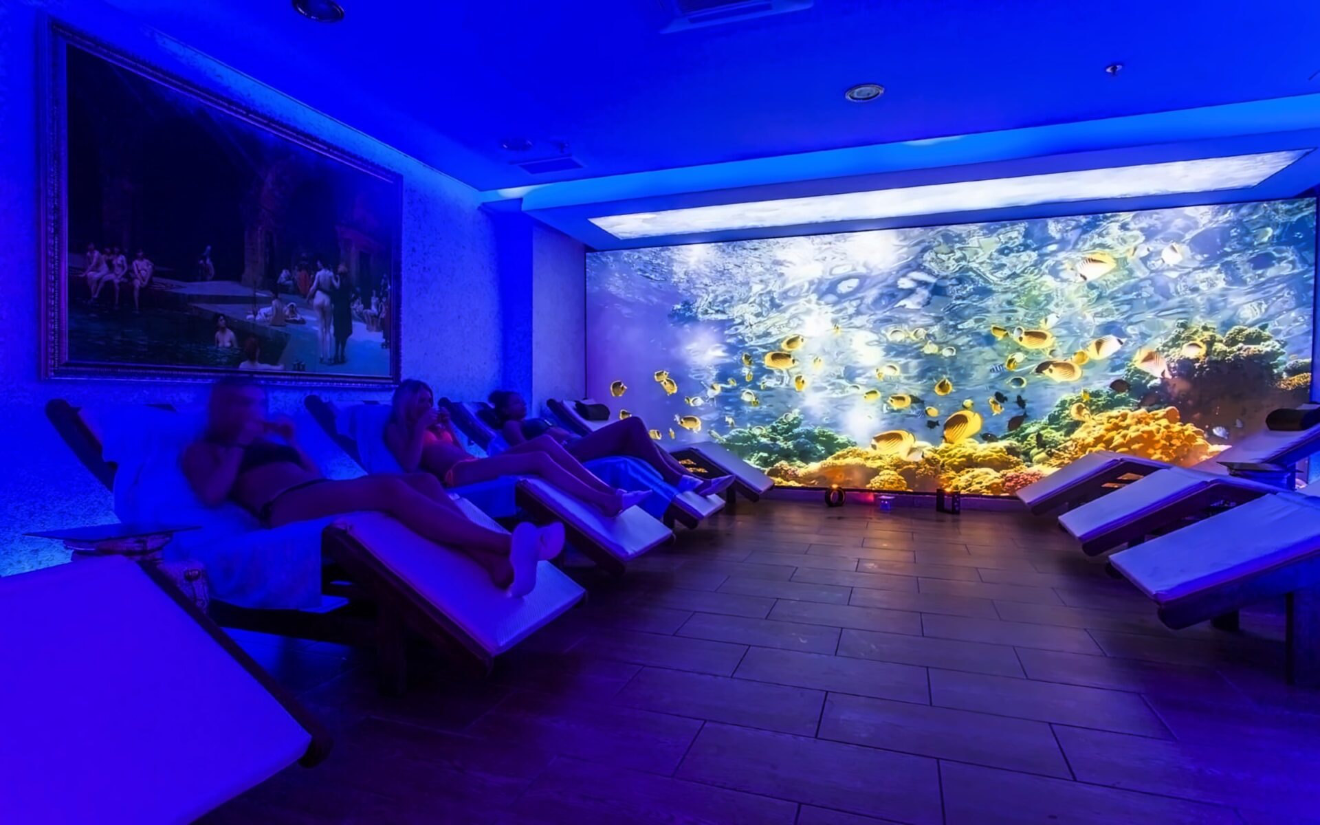 Терраса для загара с бесплатными шезлонгами и зонтиками